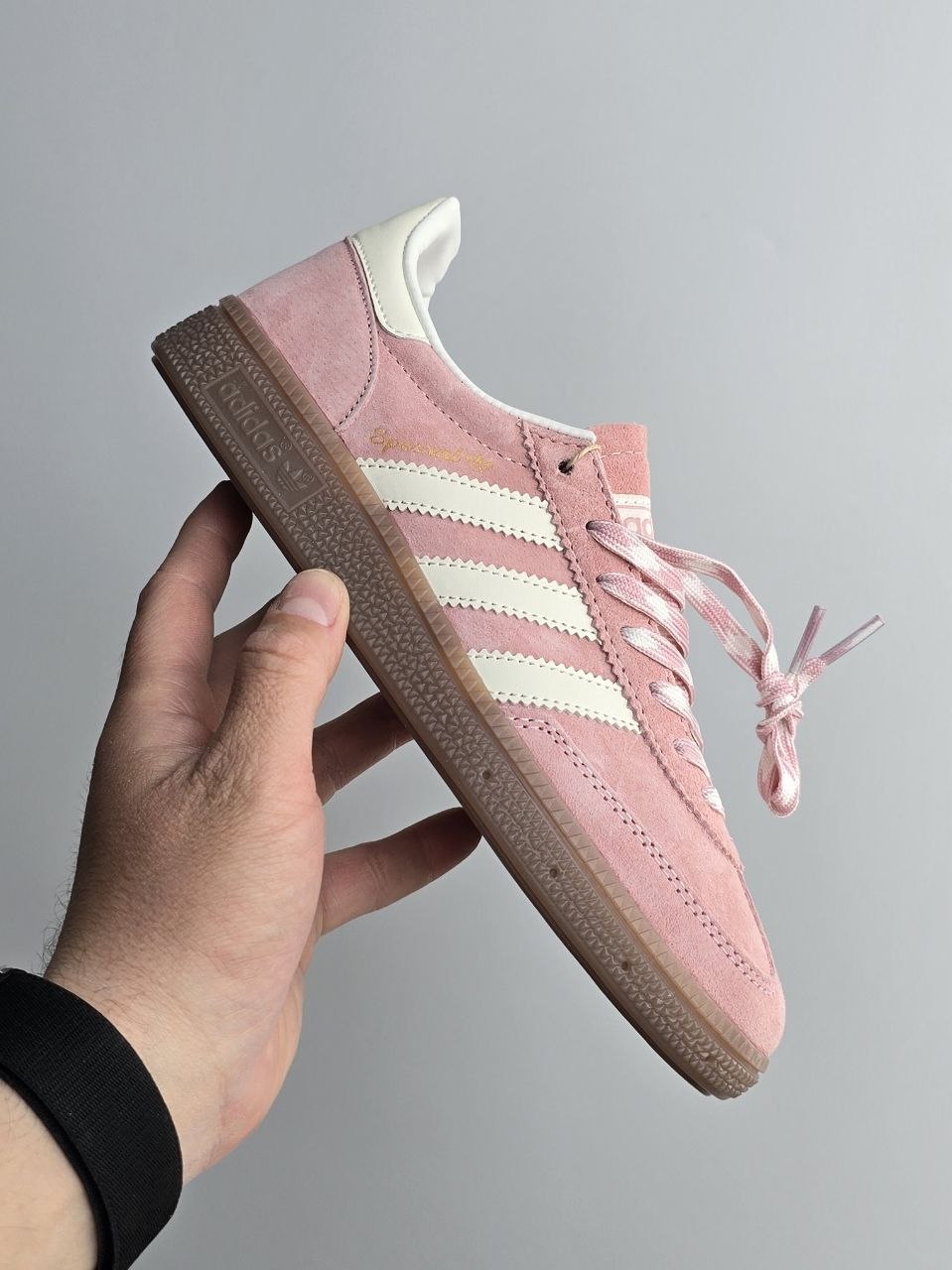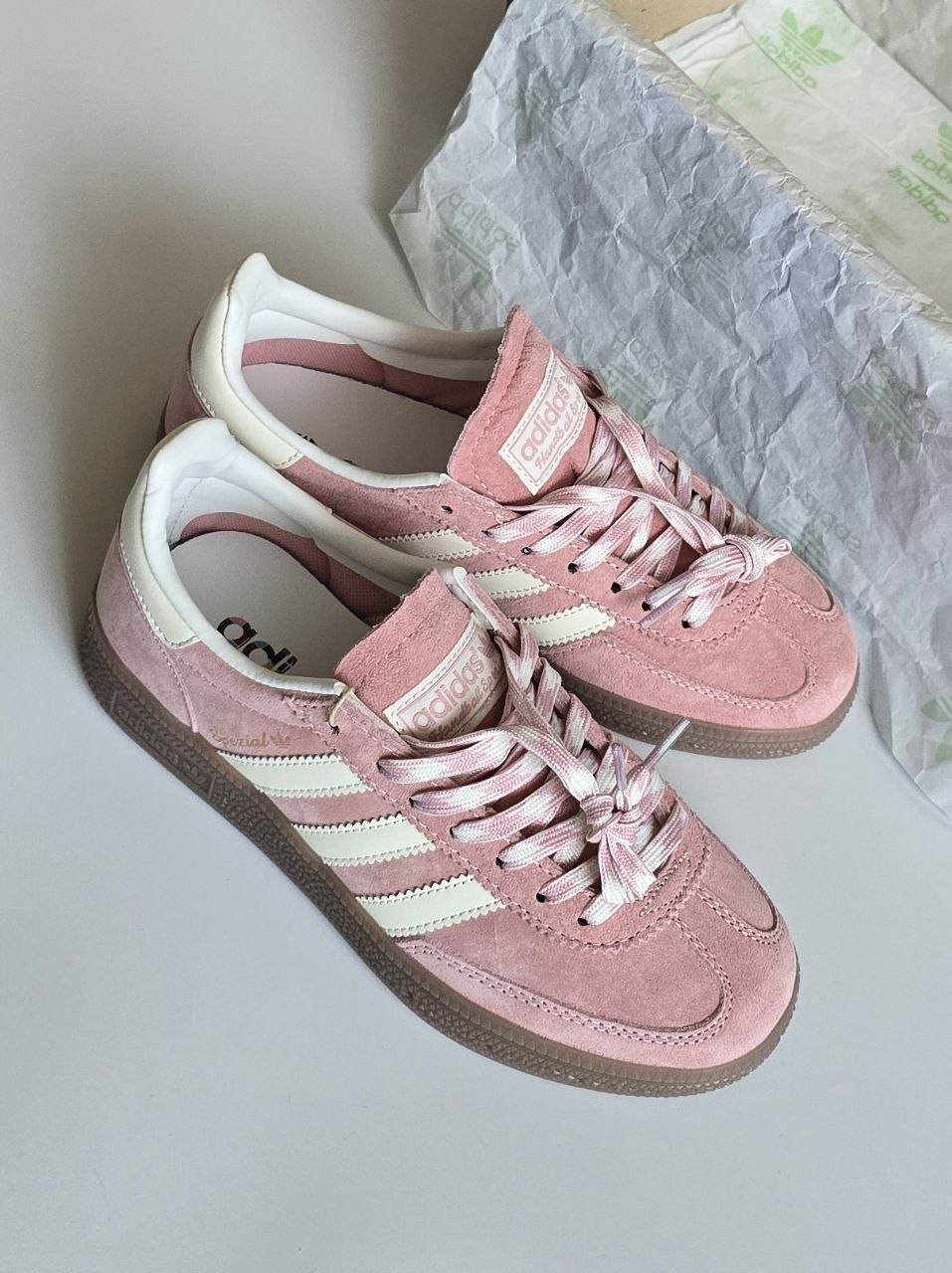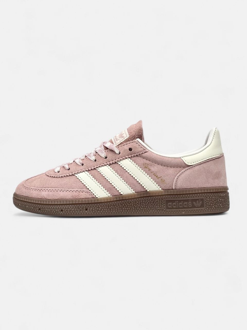 Adidas Spezial Powder Pink — це ніжні кросівки у ретро-стилі з пудрово-рожевим замшевим верхом і класичною гумовою підошвою для легкого та стильного повсякденного образу.