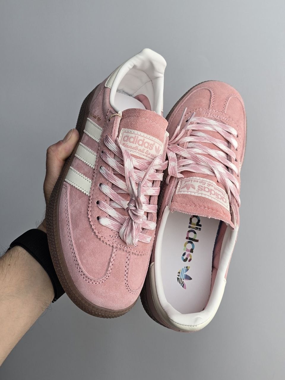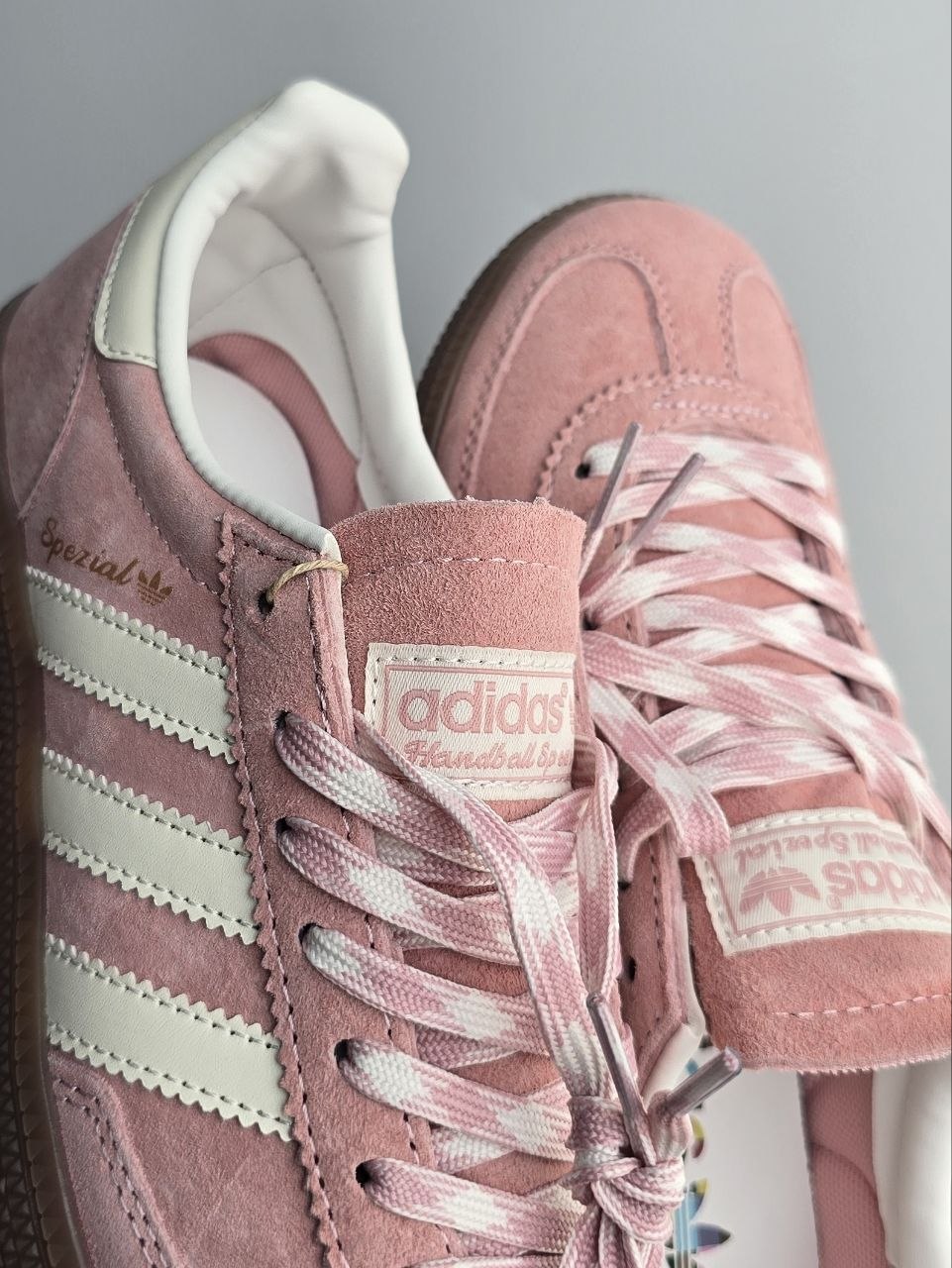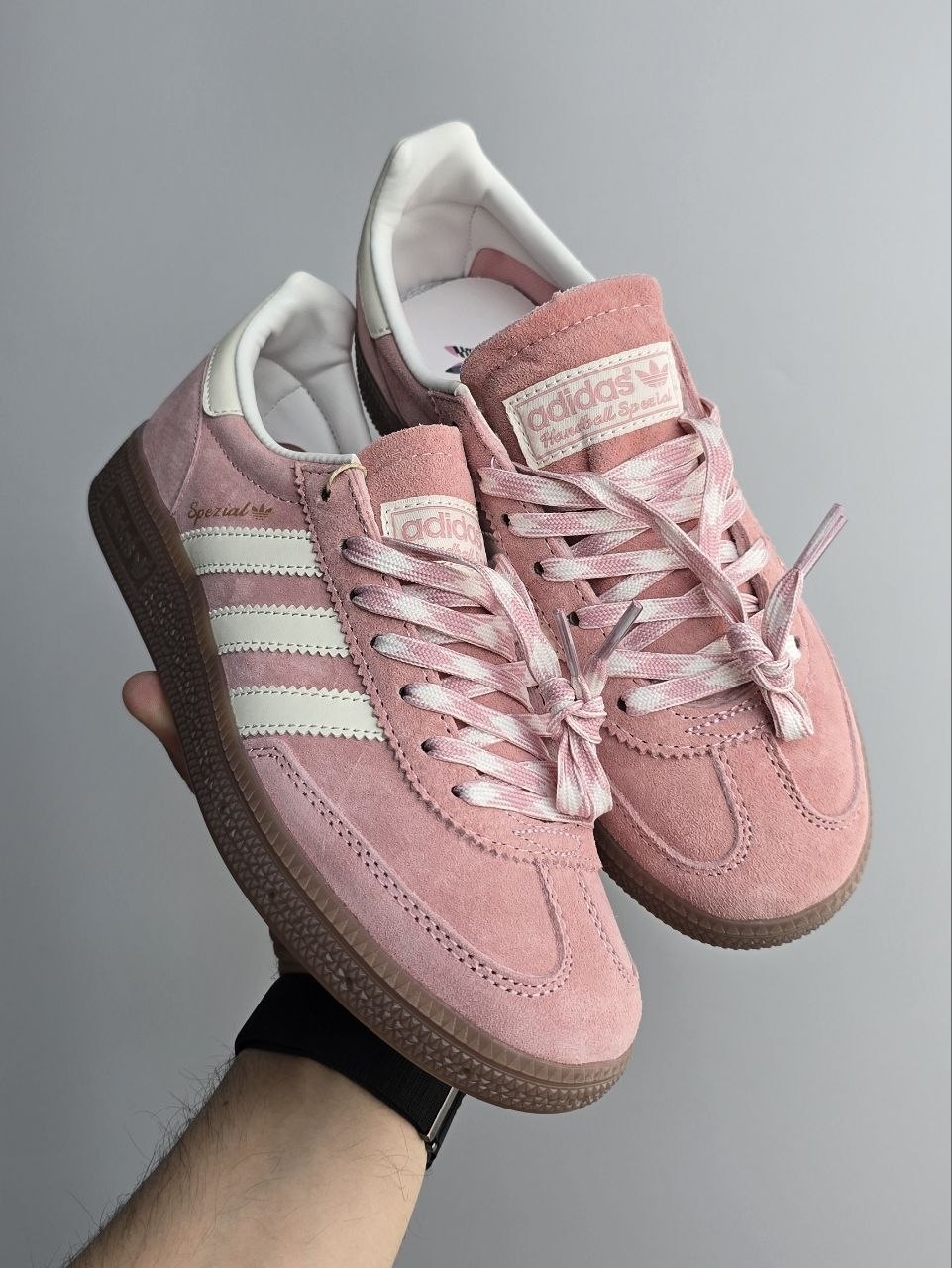 Adidas Spezial Powder Pink — це ніжні кросівки у ретро-стилі з пудрово-рожевим замшевим верхом і класичною гумовою підошвою для легкого та стильного повсякденного образу.