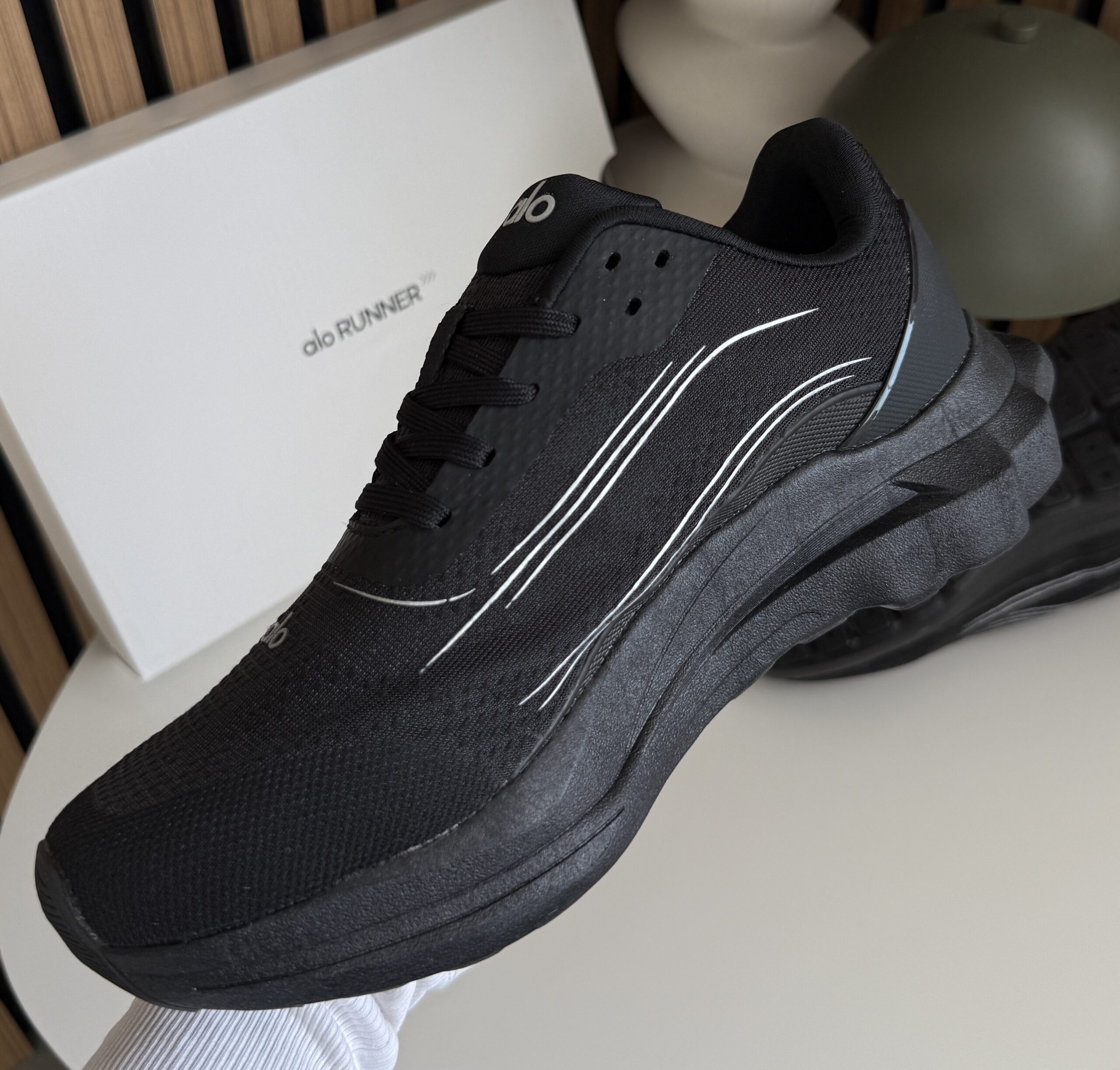 Alo Yoga Runner  — це стильні чорні кросівки з мінімалістичним дизайном і легкою амортизуючою підошвою, створені для комфортних тренувань і щоденного активного життя.