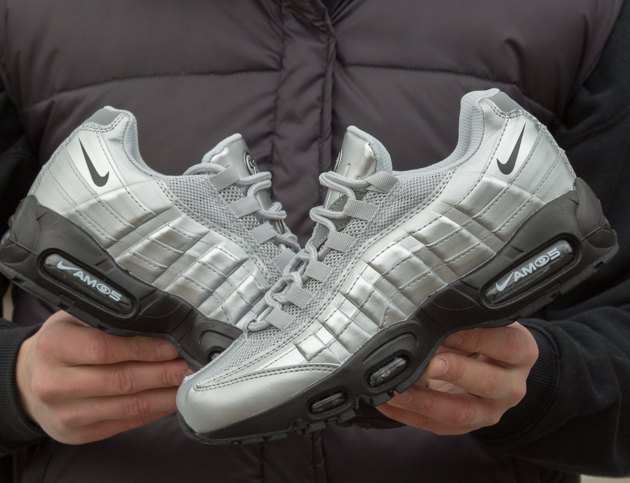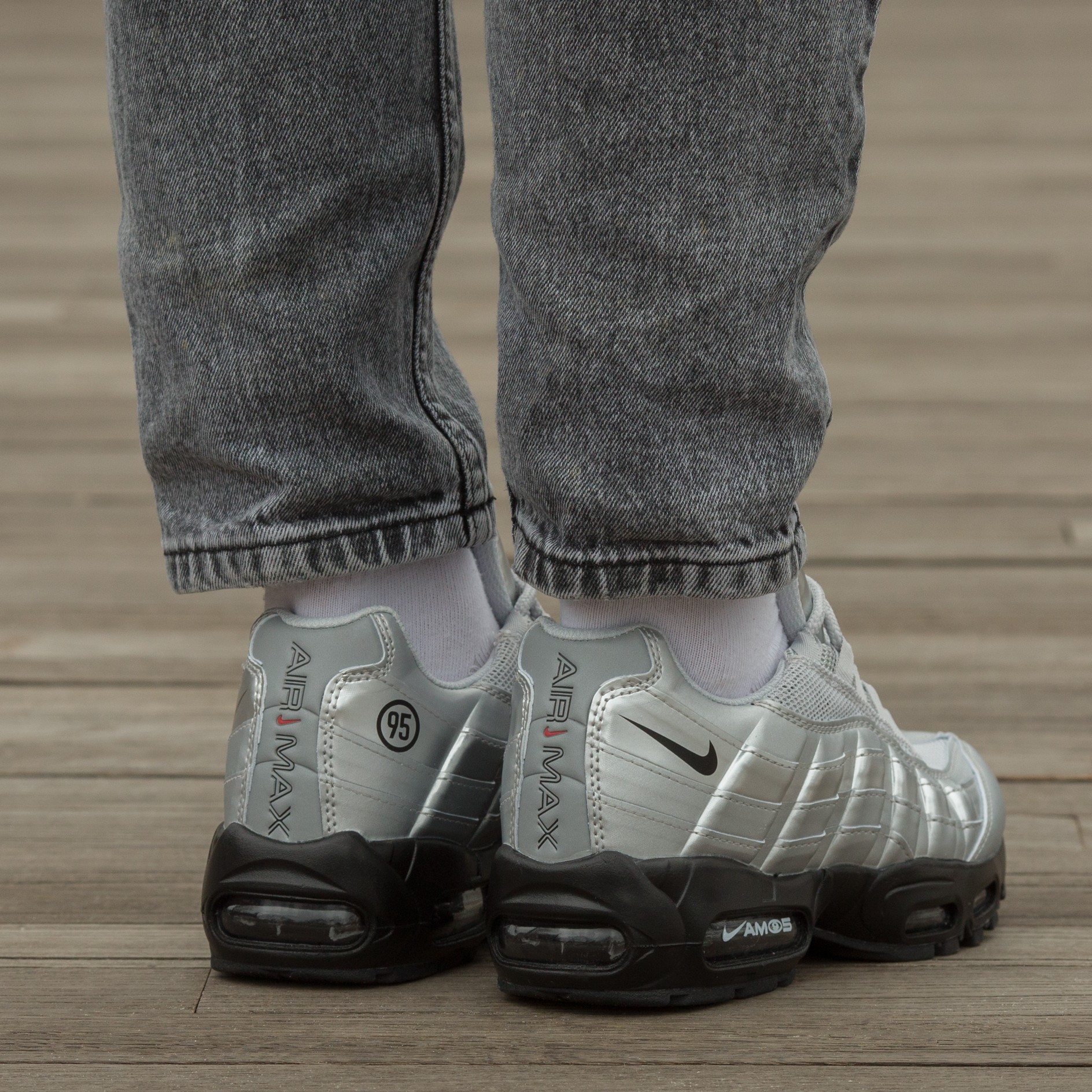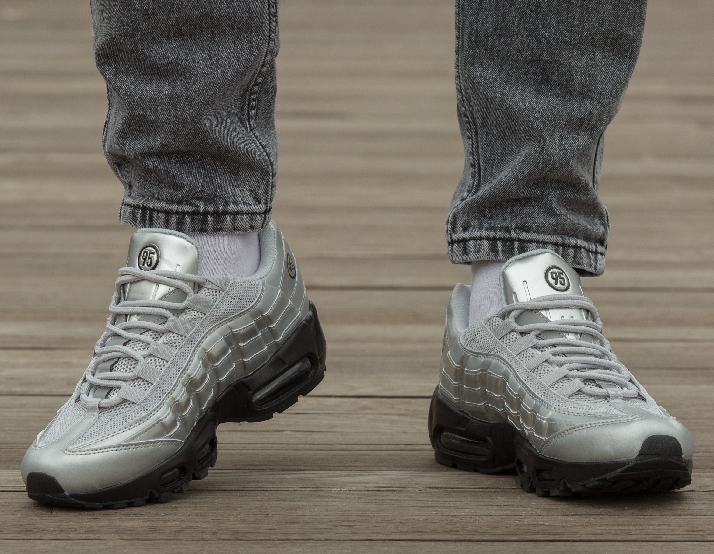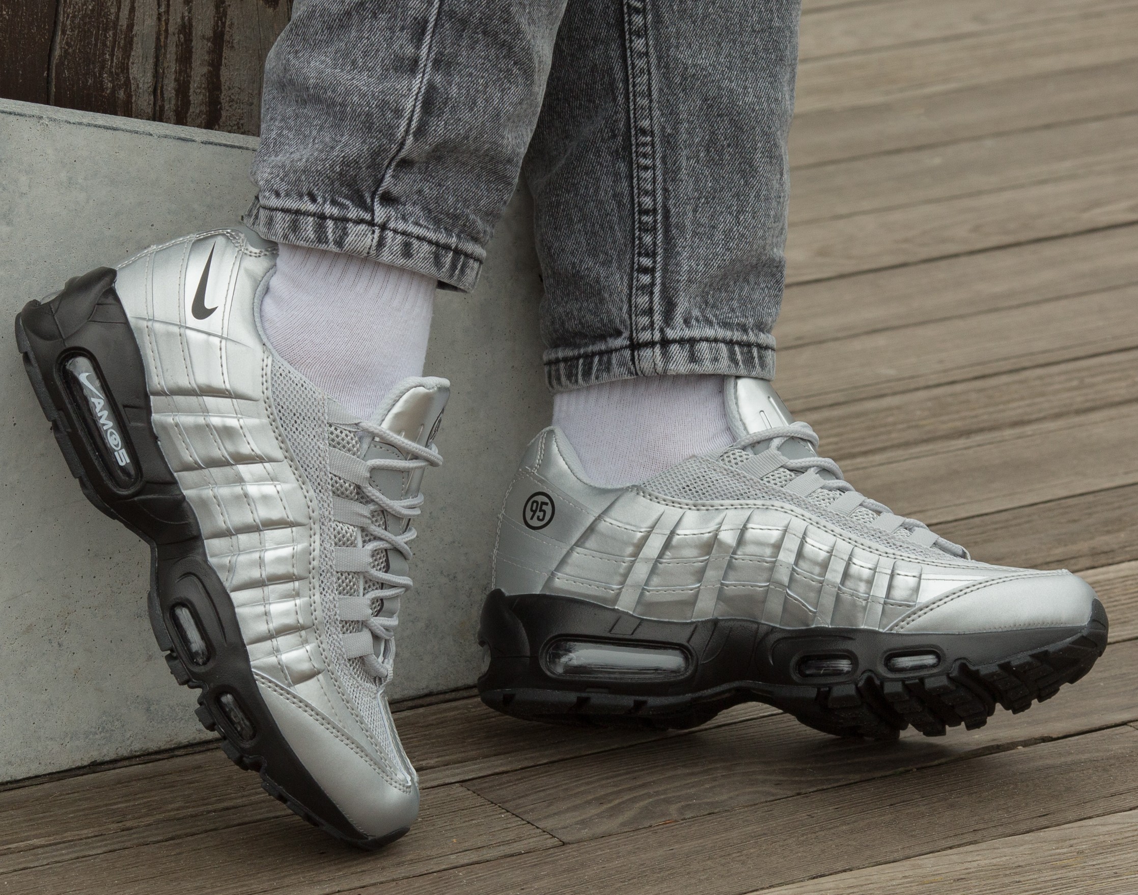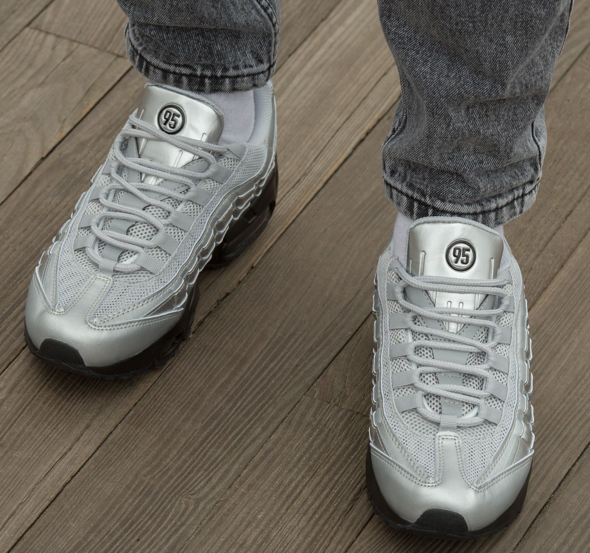 Nike Air Max 95 Silver — це культові кросівки в сріблясто‑чорній колірній гамі з фірмовою видимою амортизацією Air у підошві й шаруватим дизайном верху, що поєднують комфорт, стиль 90‑х і універсальність для щоденного носіння.