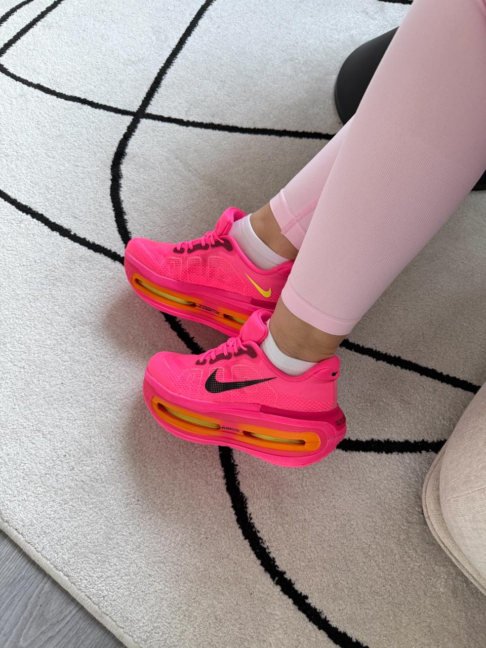 Nike Vomero Hyper Pink — це яскраві бігові кросівки з дихаючим сітчастим верхом і максимальною амортизацією ZoomX та Zoom Air, що забезпечують м’який, енергійний крок і комфорт на кожен день.