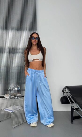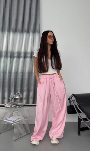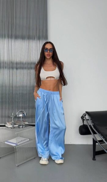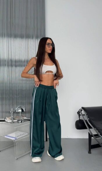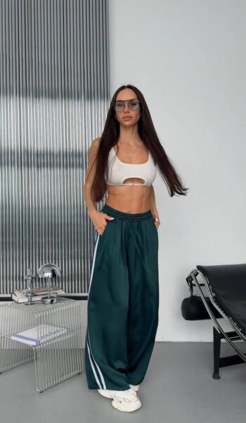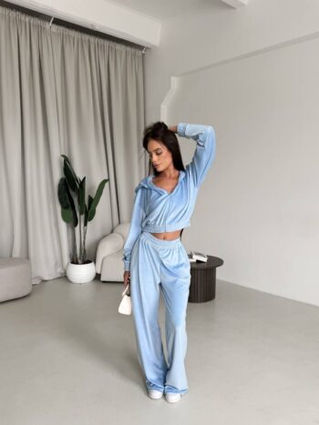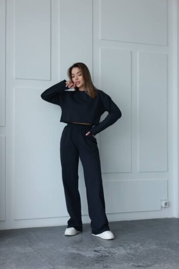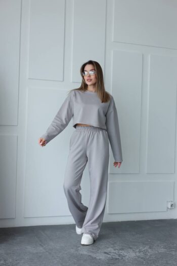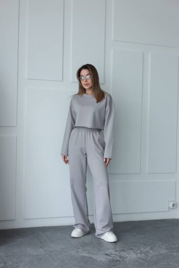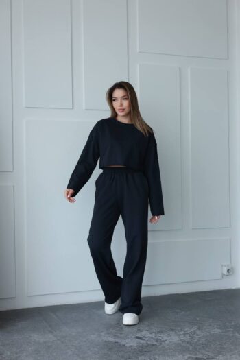 Жіночий костюм кроп-світшот та прямі штани 0987т