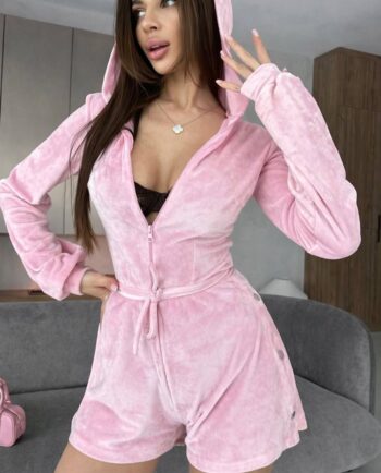Жіночий короткий велюровий комбінезон 57с5а