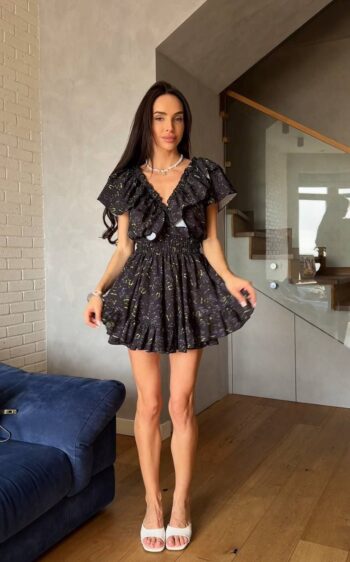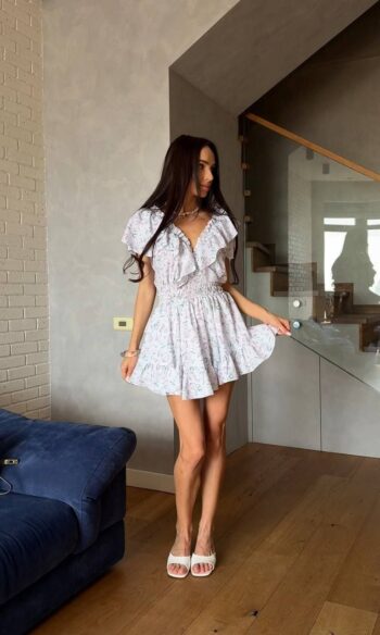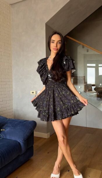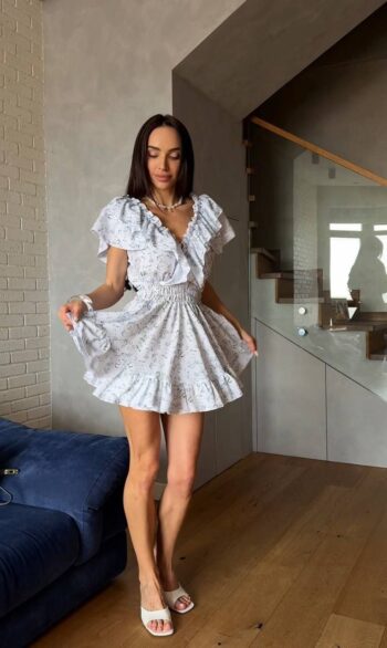 Жіноча сукня міні з квітковим принтом 452т3а