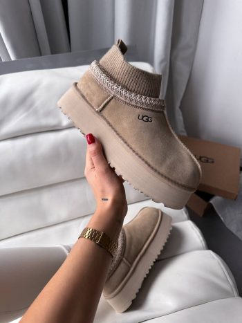 Ugg Mini Platform Beige — це стильні та зручні замшеві уггі з підвищеною підошвою, що додають висоти й тепла в елегантному бежевому кольорі.