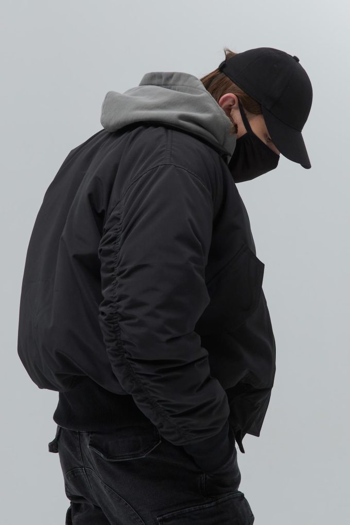 Дві великі накладні кишені спереду,одна на рукаві, потаємна кишеня всередені. Фірмовий патч в районі сердця.