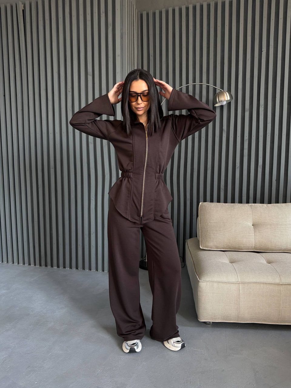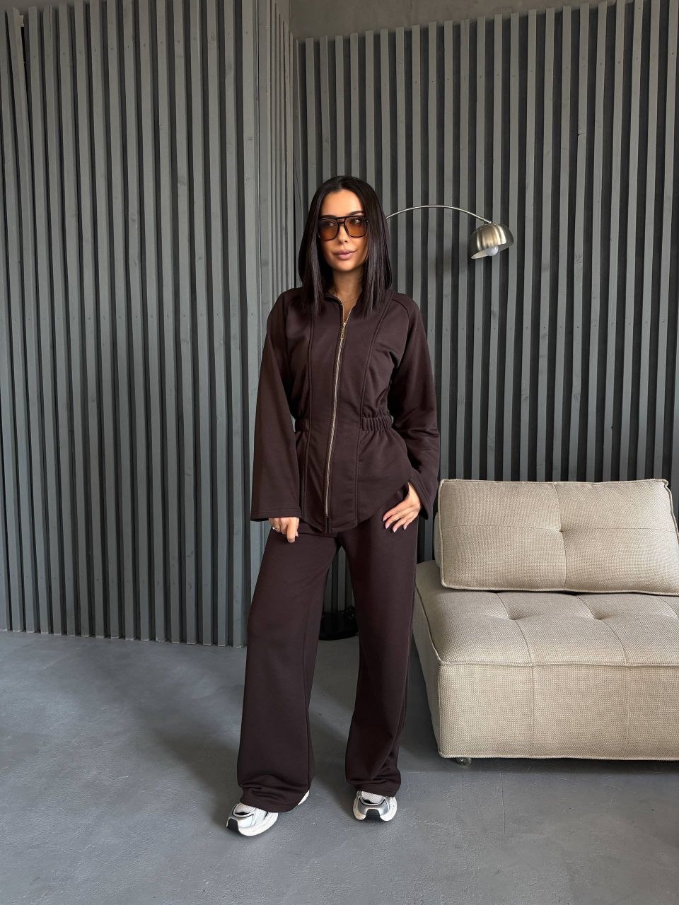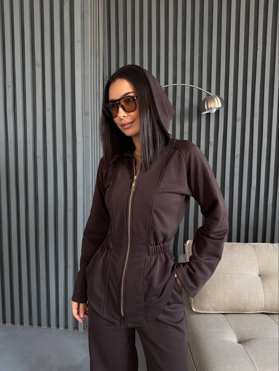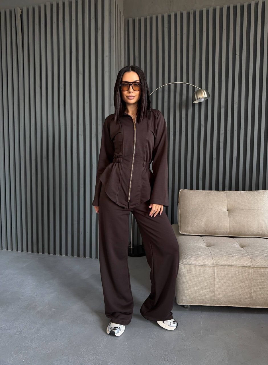 Кофта на блискавці приталеного крою підкреслює силует. Штани мають комфортний крій, що забезпечує зручність у русі. Матеріал щільний та приємний до тіла, підходить для щоденного використання.
