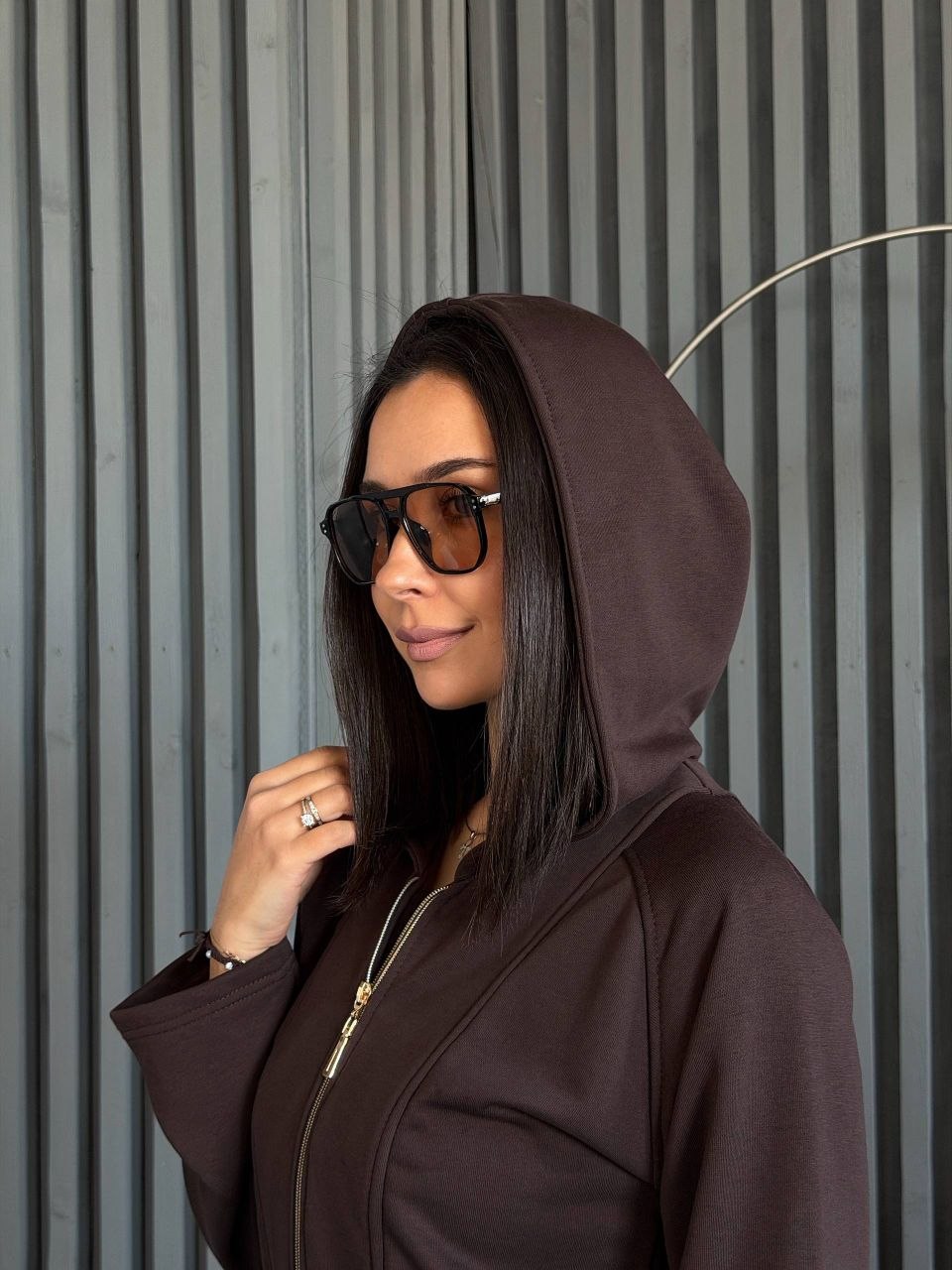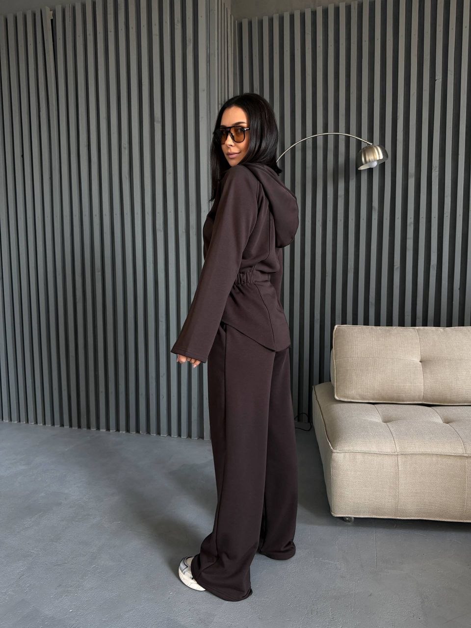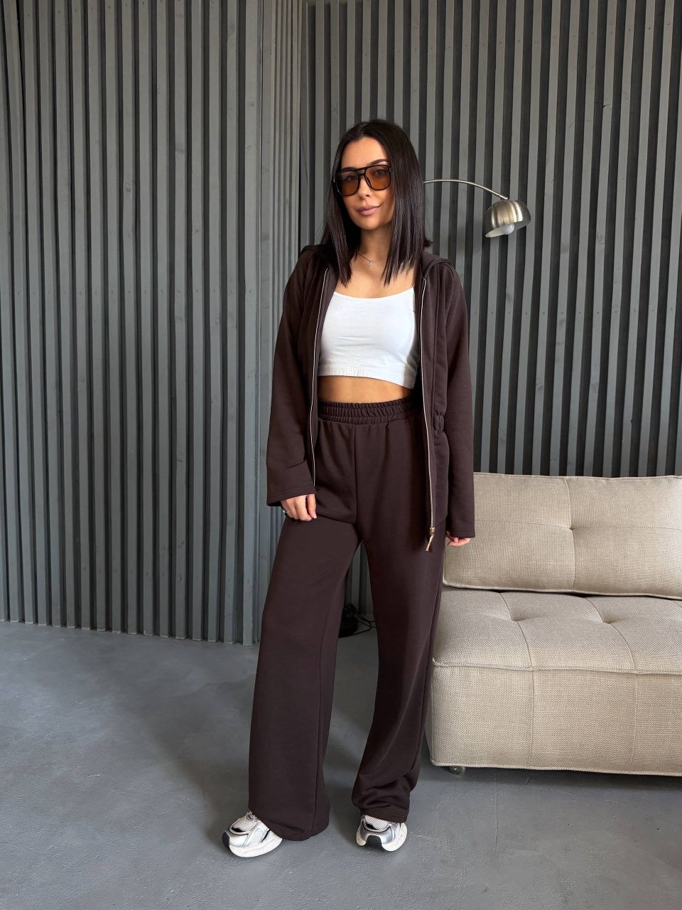 Кофта на блискавці приталеного крою підкреслює силует. Штани мають комфортний крій, що забезпечує зручність у русі. Матеріал щільний та приємний до тіла, підходить для щоденного використання.