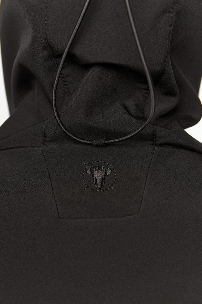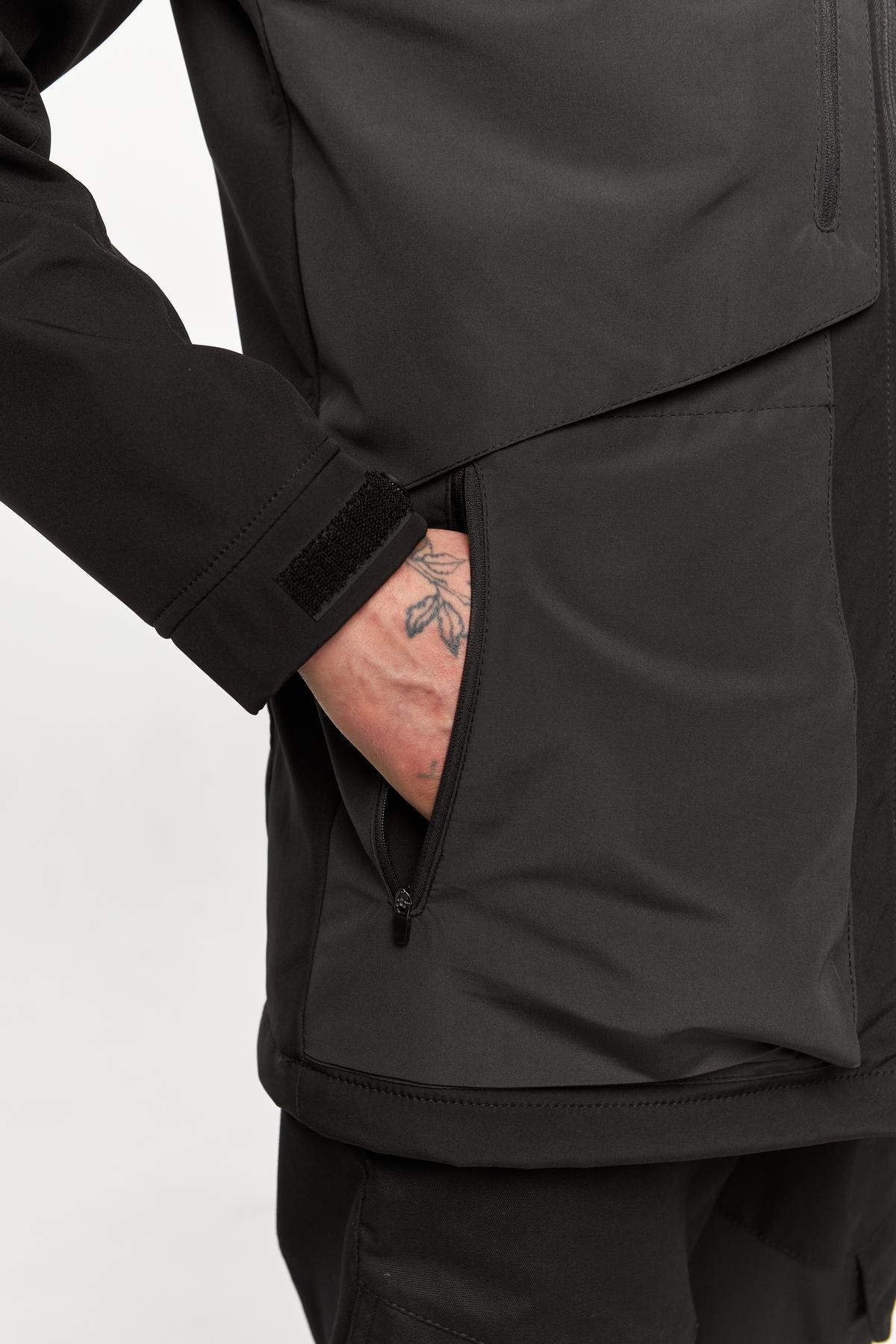 Куртка виконана з матеріалу софтшел (мембранна тканина на основі з мікрофлісу), накладні кишені куртки виконані з водонепроникної плащівки. Верхні накладні кишені відлетні, фіксуються за допомогою магнітних кнопок. Під основною кишенею є приховані кишені для гаманця та смартфону. Вхід в накладні кишені на блискавках.
