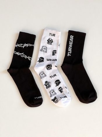 В наборі 3 пари: дві чорного кольору і одна білого.