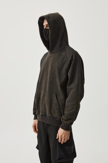 Світшот з щільної тринитки оверсайз крою на блискавці. По всьому виробу вставки з основної тканини, діагоналлю навиворіт. На плечах імітація реглану. Містить дві кишені з листочками. Фірмові принти чорного кольору в районі серця та на спинці.