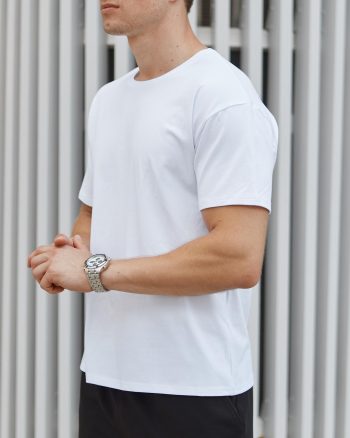 Футболка вільного крою з круглим коміром і подовженими рукавами. На грудях вишивка tur wear в колір виробу