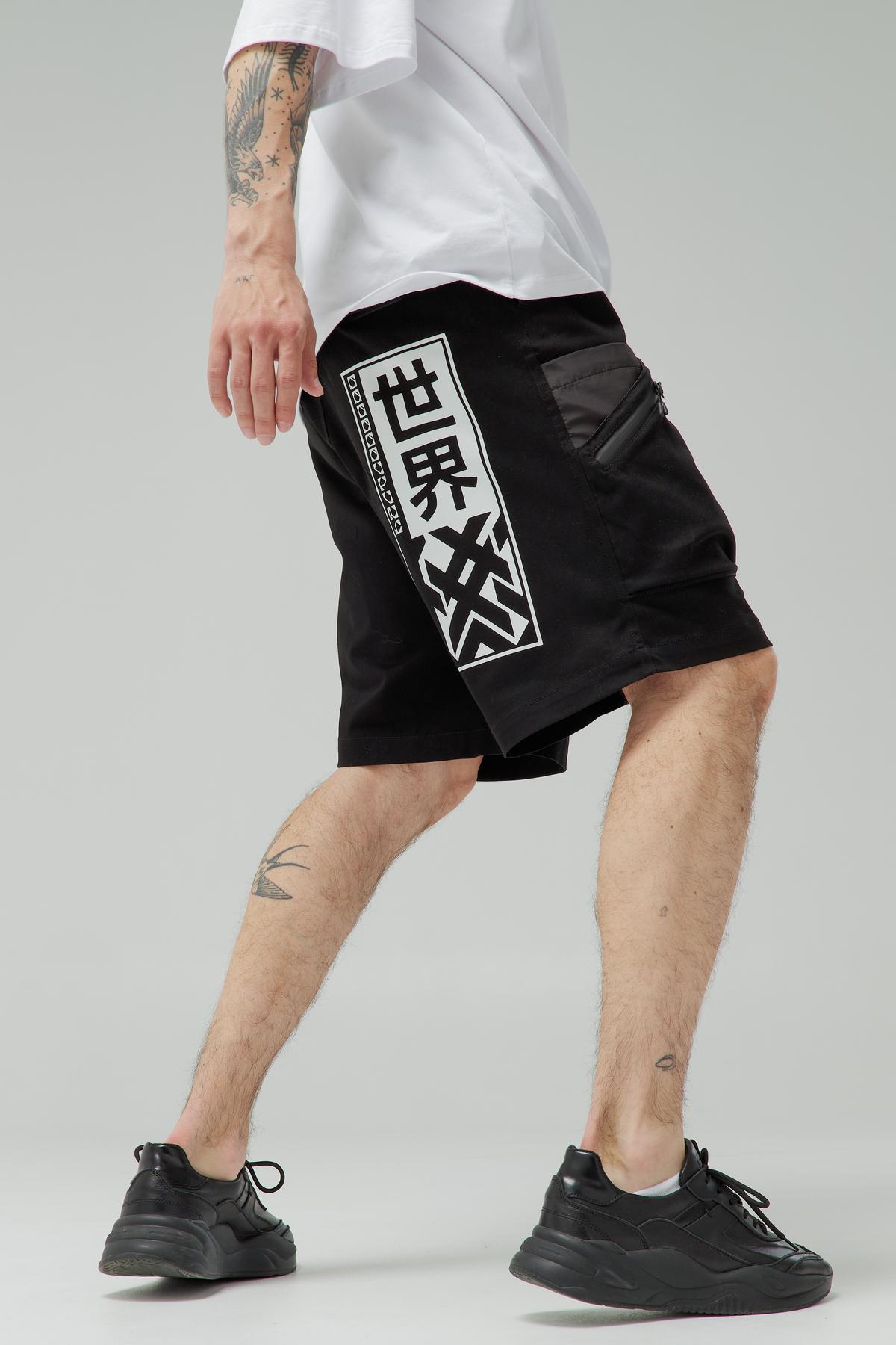 Шорти карго з низькою вільною посадкою, в поясі вбудована резинка для кращої посадки та двосторонній пояс на ремінній стрічці, для точної фіксації по фігурі.