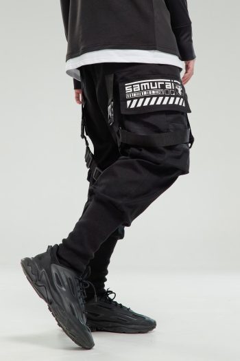 Всього шість кишень: по бокам дві накладні кишені з клапанами на ліпучках, дві накладні позаду, дві брючні.