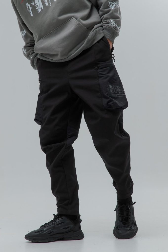 Внизу штанина звужується за допомогою блискавки. На колінах зроблені виточки для комфорту присідання та ходіння. На спинці в області колін зроблені вставки з мікрофлісу та жатки, як верхнього шару. З правої сторони під поясом вшите напівкільце.