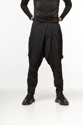 Всього шість кишень: по бокам дві накладні кишені з клапанами на ліпучках, дві накладні позаду, дві брючні.