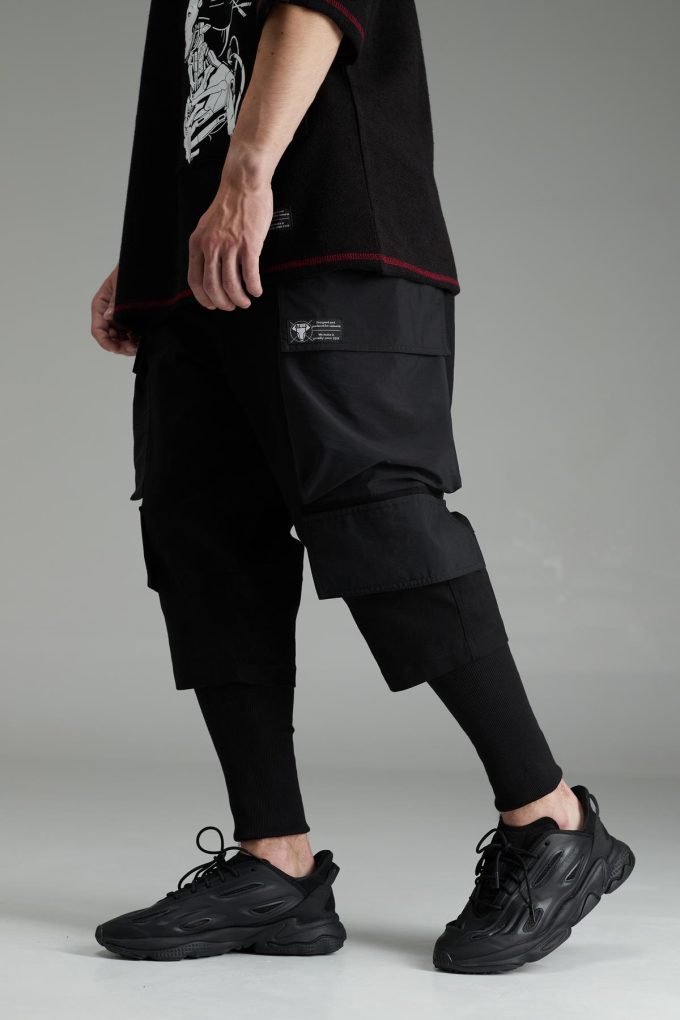 В якості декоративних елементів, є червона резинка на поясі і маленькі червоні закріпки на карманах.