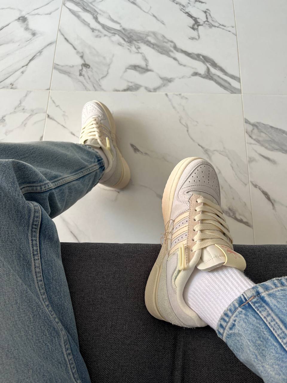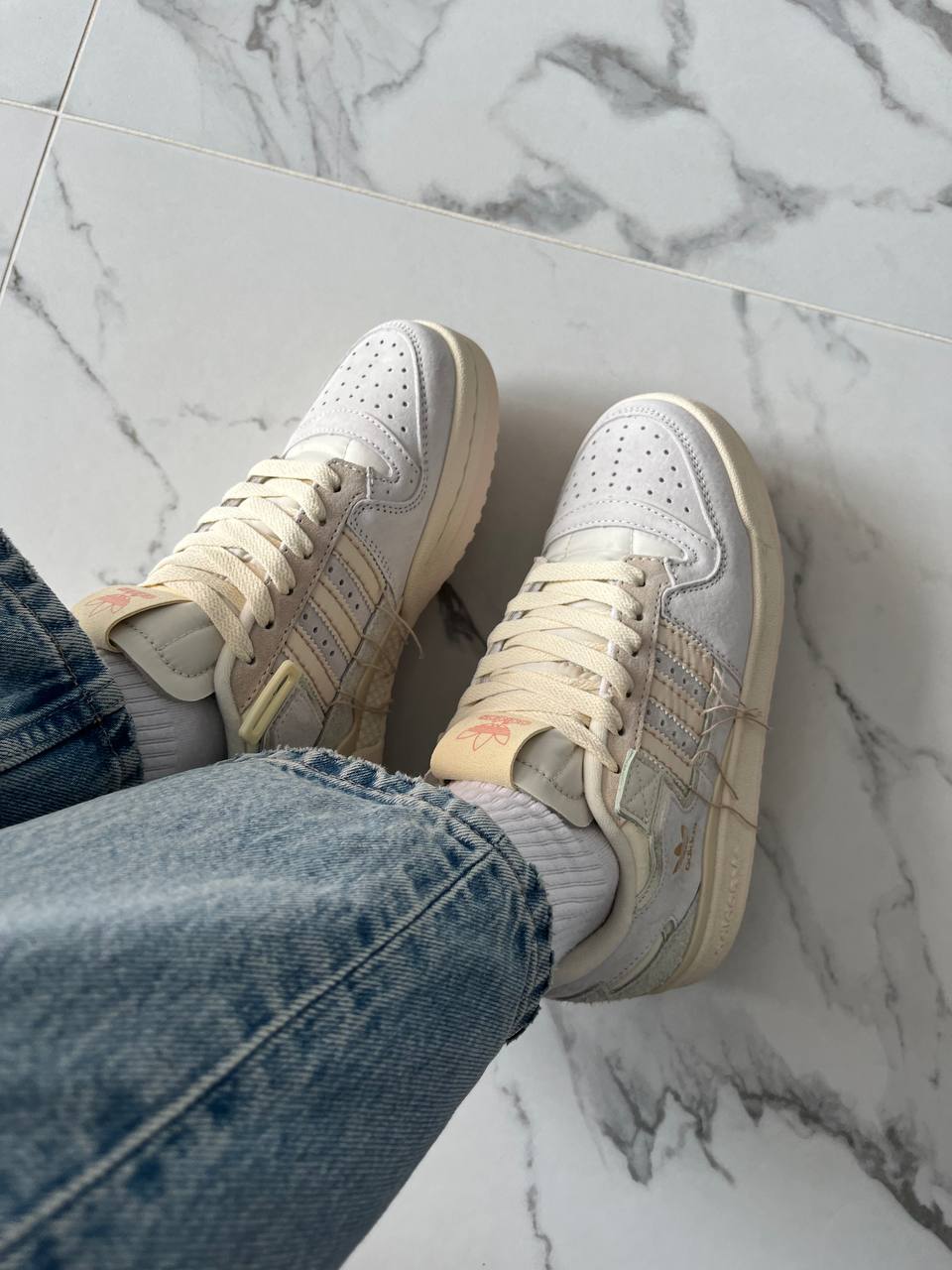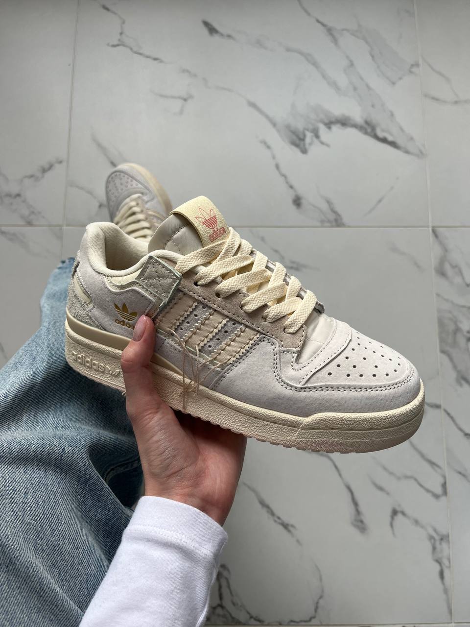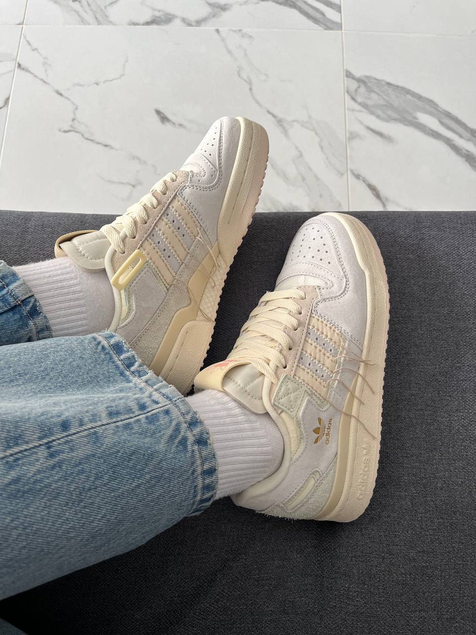 Adidas Forum 84 Low Off White Beige — це поєднання класичного баскетбольного силуету, м’якої бежево-молочної палітри та щоденного комфорту. Вінтажна естетика з акуратними деталями створює стриманий, елегантний образ, який виглядає актуально та легко вписується в різні стилі. Фірмовий дизайн adidas підкреслює впізнаваність і характер моделі.