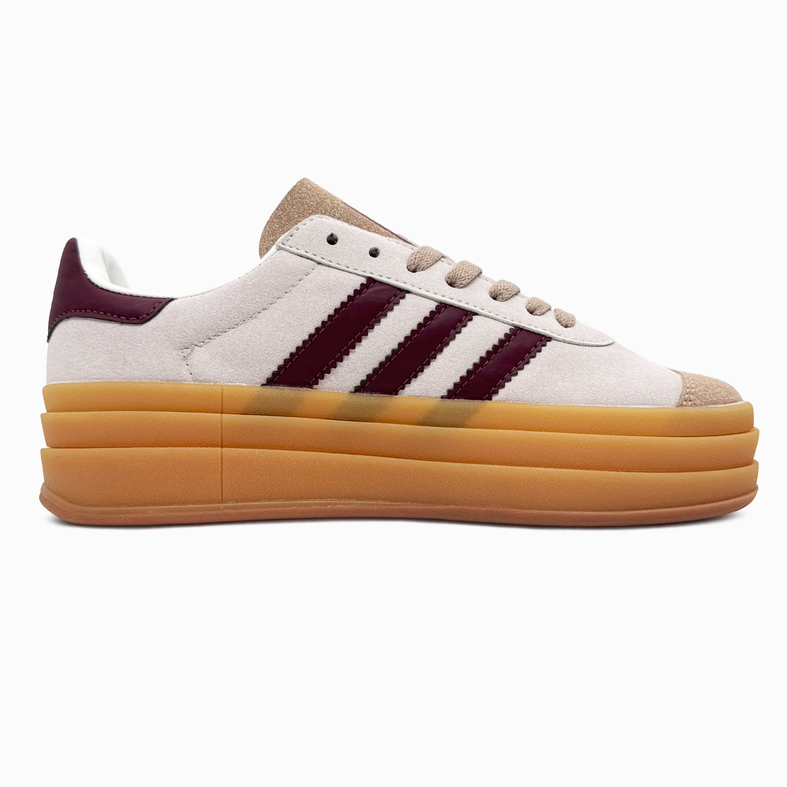 Adidas Gazelle Bold Cream Maroon — це стильні кросівки в оновленому ретро-силуеті Gazelle з піднесеною платформою, кремово-білою базою й бордовими акцентами, поєднуючі класичний дизайн і сучасний комфорт для повсякденного носіння.