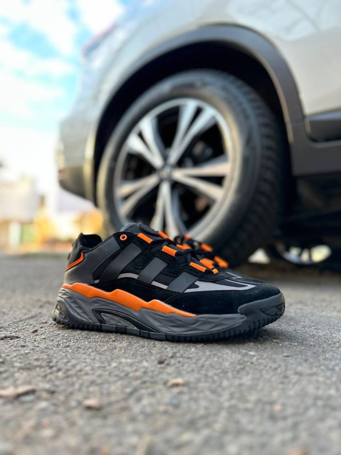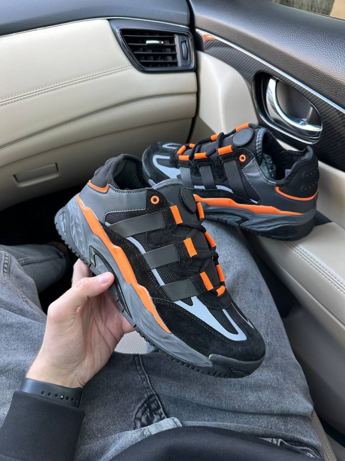 Adidas Niteball Black Orange — стильні кросівки з яскравими оранжевими акцентами, що поєднують сучасний дизайн і комфорт для повсякденного використання.