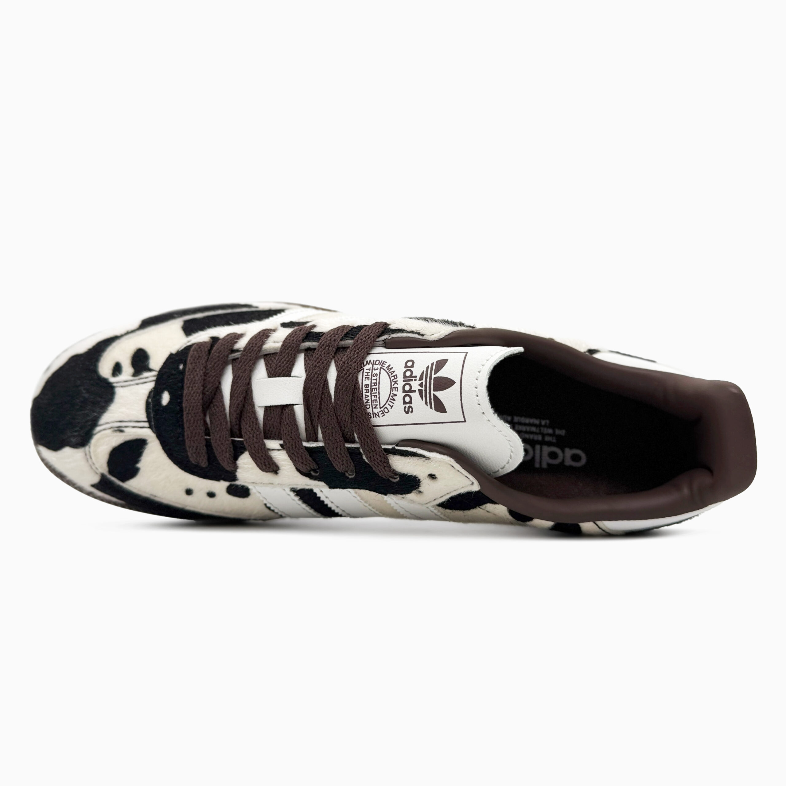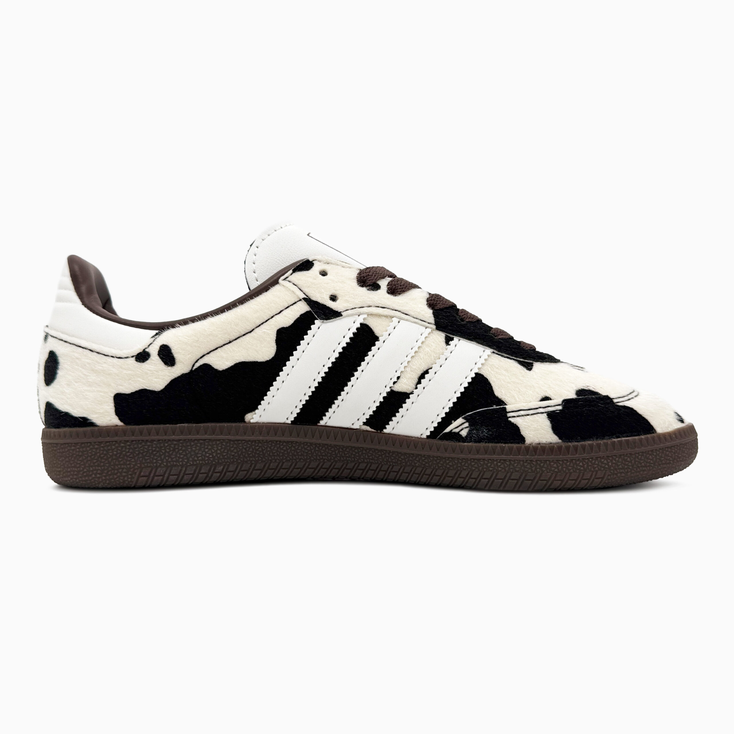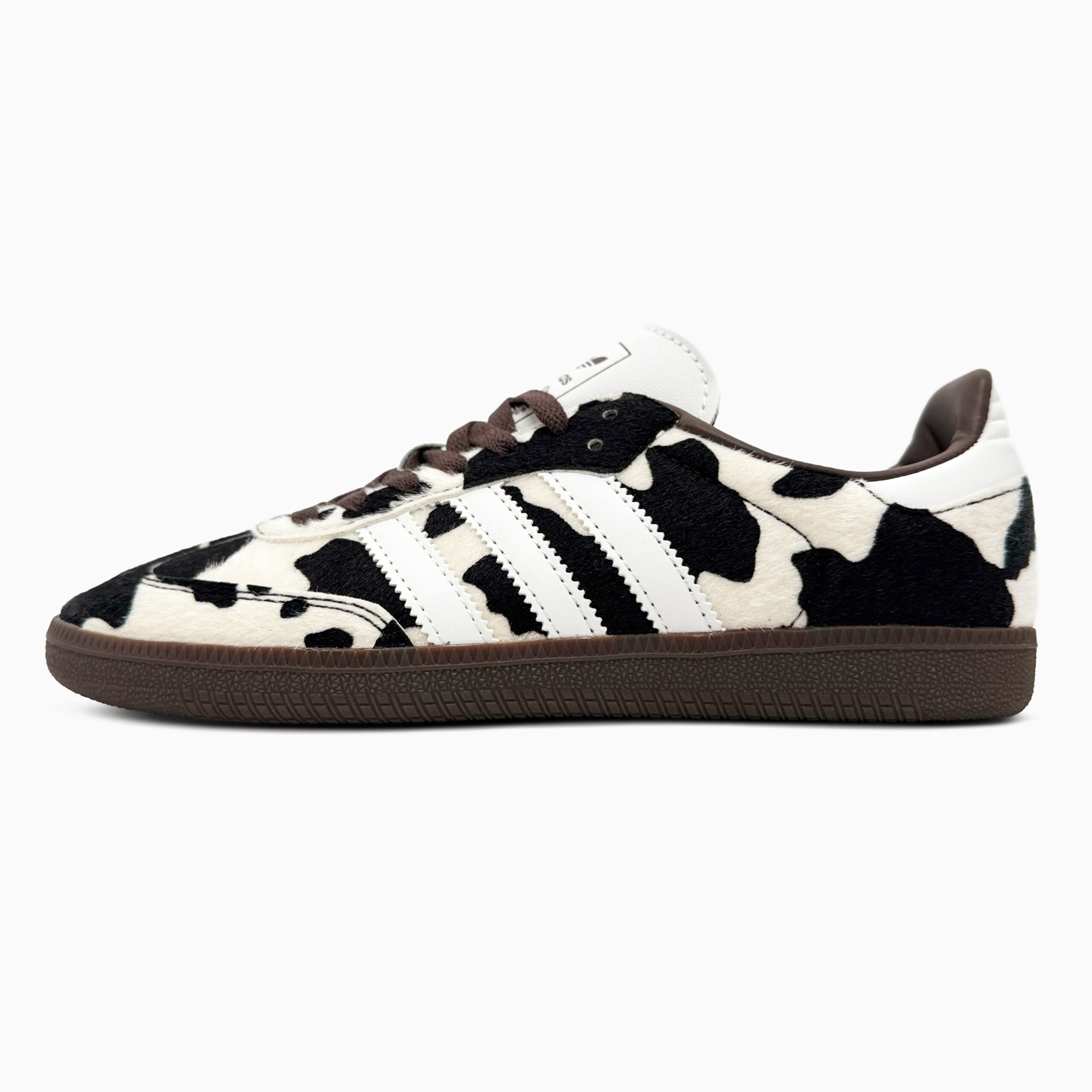 Adidas Samba OG Cow Print Dark Brown White — це оригінальні кросівки з культовим силуетом Samba, виконані в темно-коричнево-білому кольорі з ефектним принтом cow print, що поєднують ретро-естетику та стильний акцент для повсякденних образів.