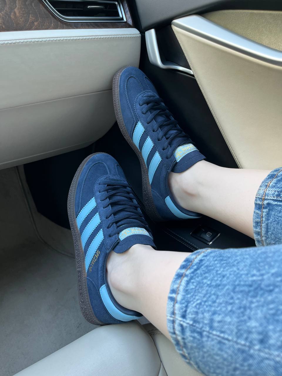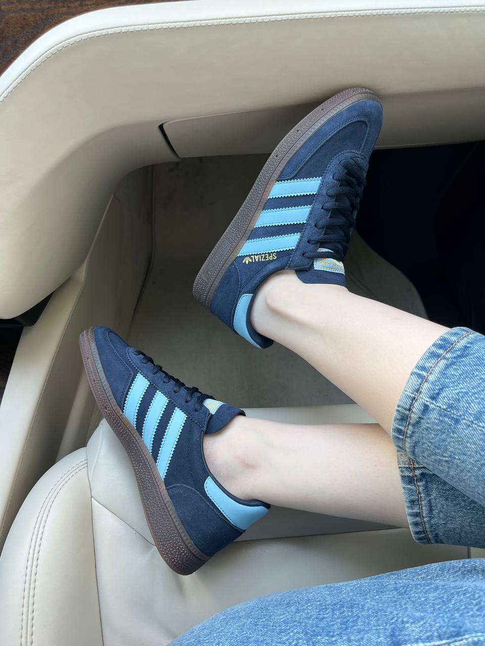 Adidas Spezial Handball Blue — це поєднання класичного ретро-силуету, насиченої синьої палітри та щоденного комфорту. Глибокий синій відтінок додає моделі виразності та стилю, а лаконічний дизайн підкреслює її вінтажний характер і впізнавану естетику adidas.