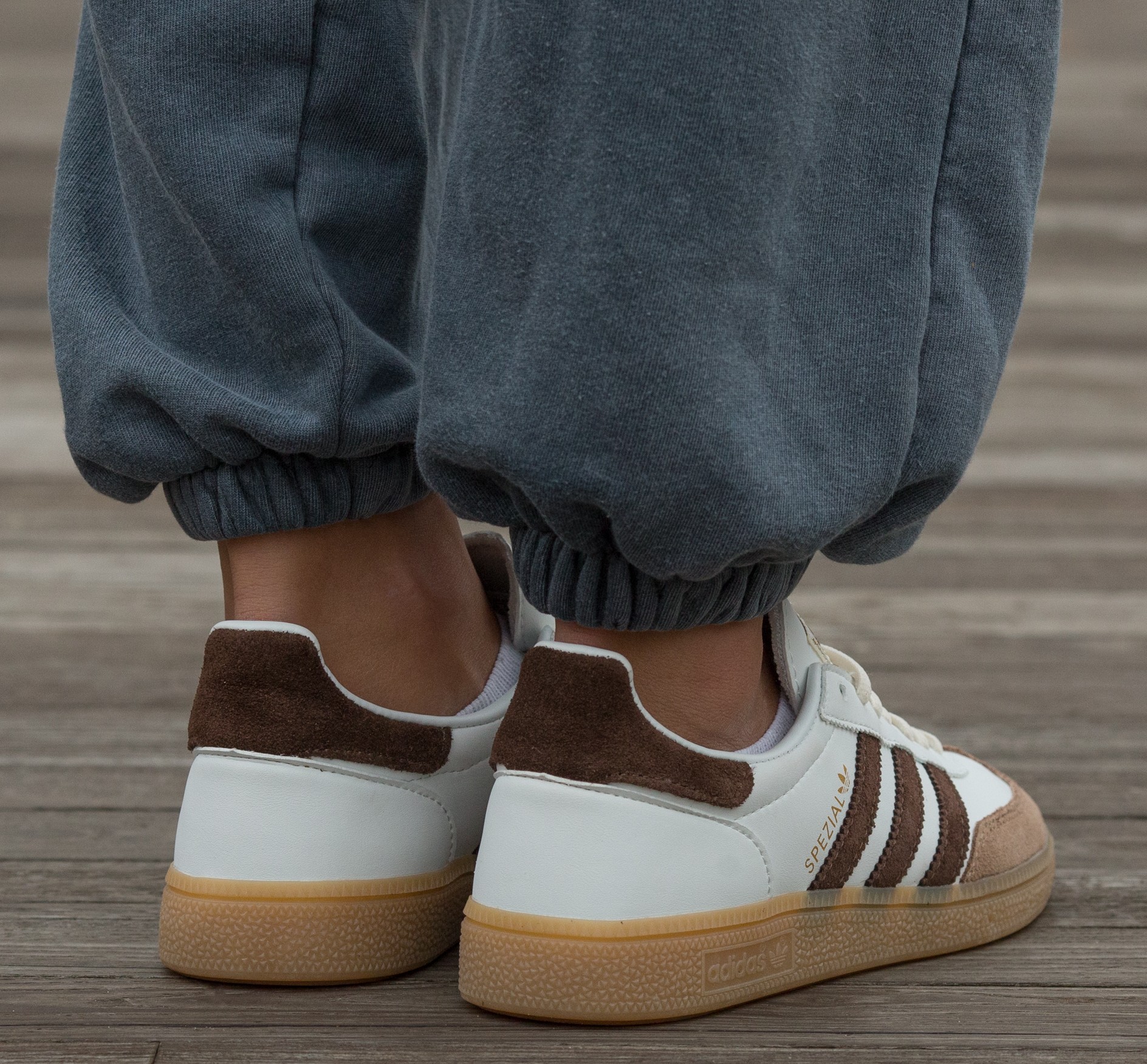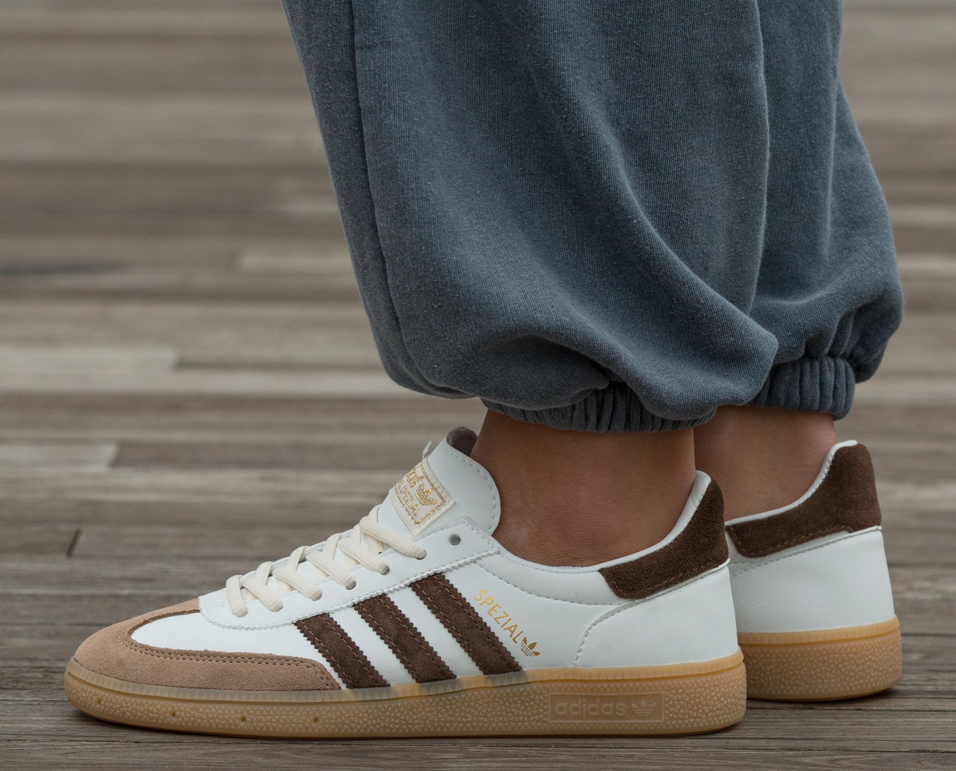 Adidas Spezial White Brown Beige — це елегантна класика з ретро-дизайном, виконана в поєднанні білого, коричневого та бежевого кольорів для стильного повсякденного образу.