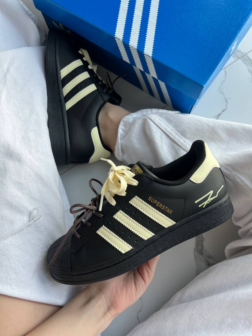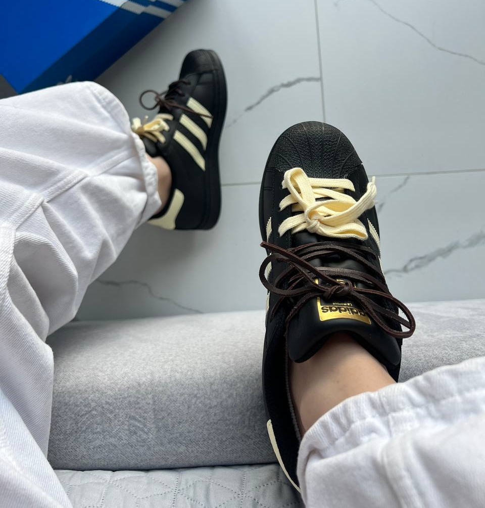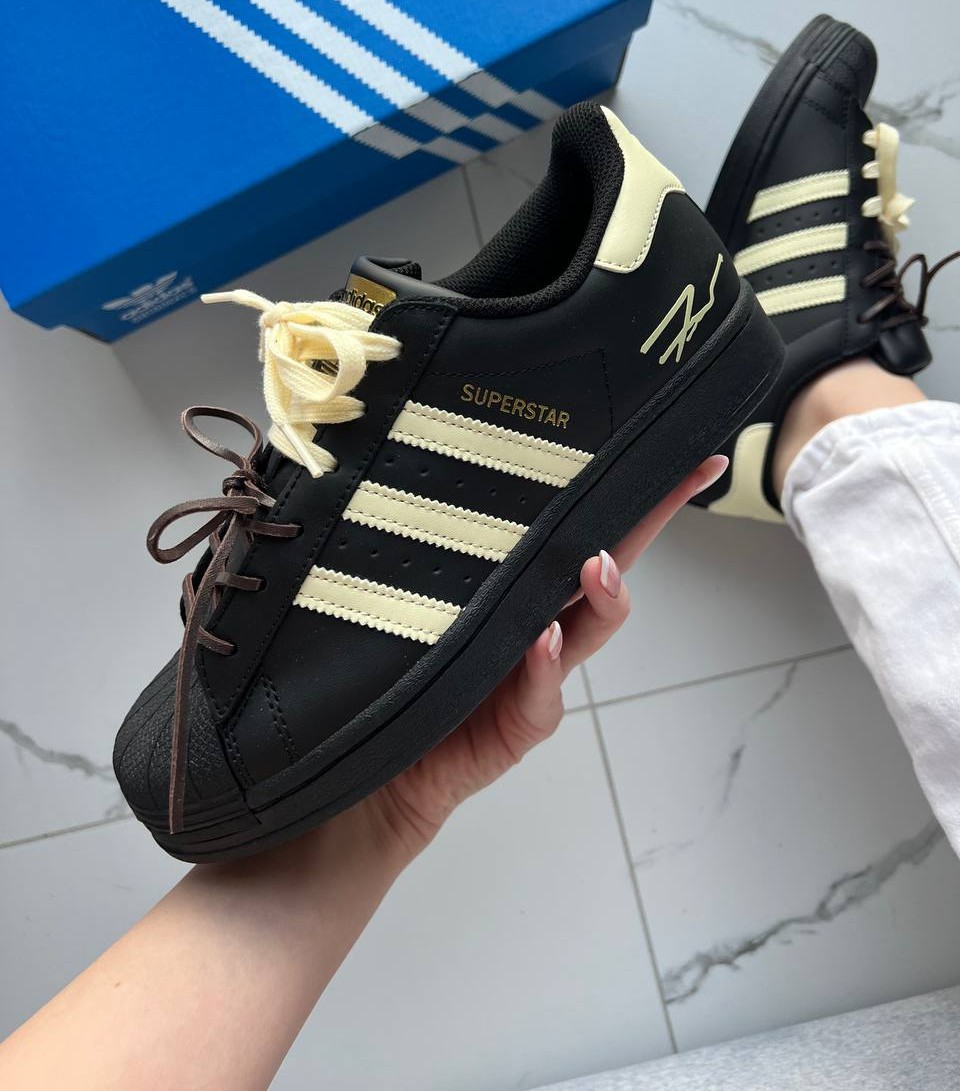 Adidas Superstar Custom Laces Black Yellow — це класичні чорні кросівки з жовтими акцентами та індивідуальними шнурками, що поєднують легендарний стиль і яскраву унікальність.