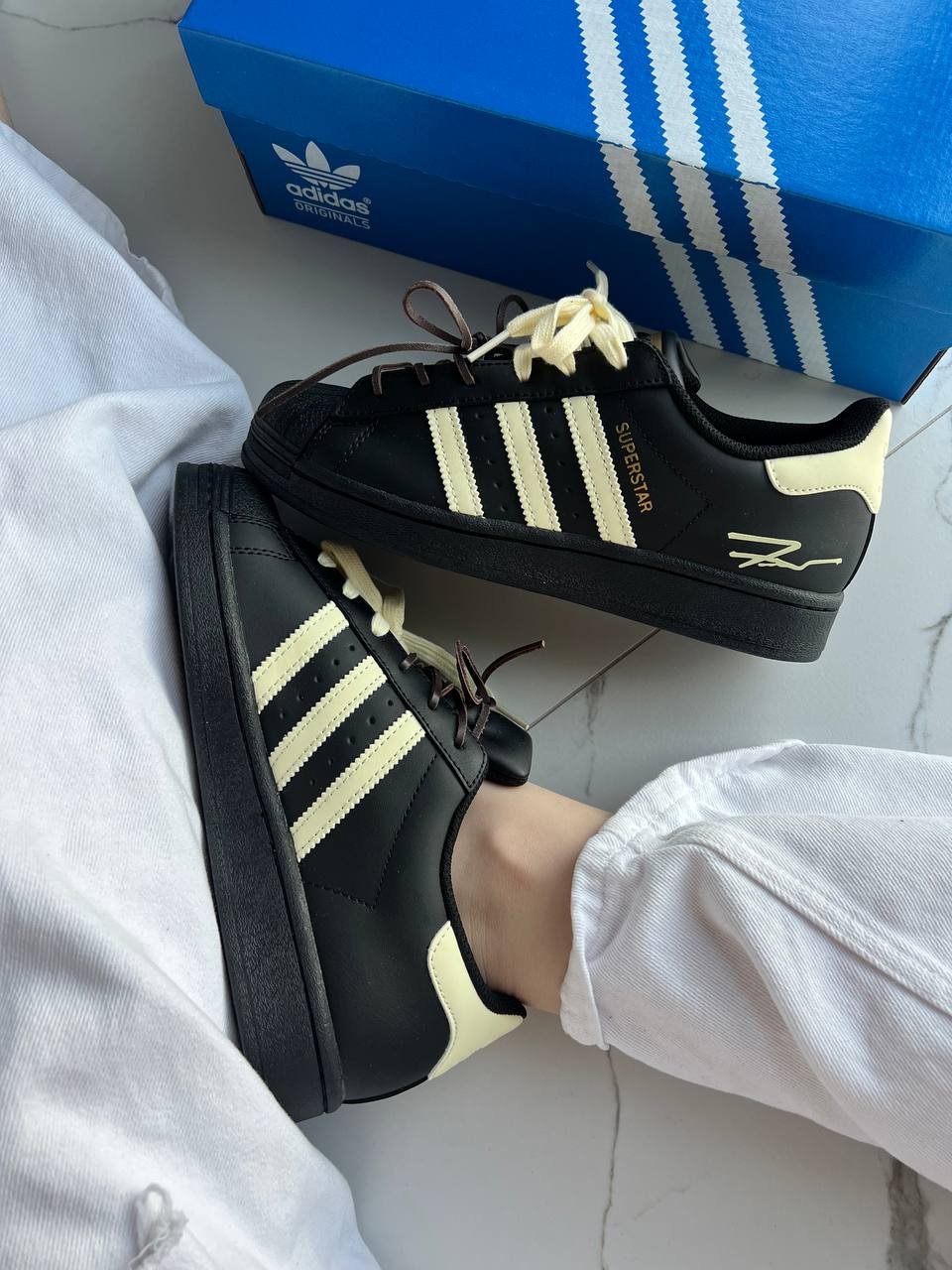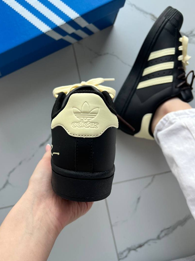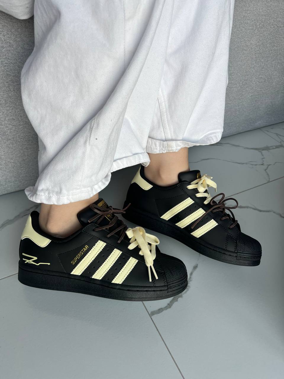Adidas Superstar Custom Laces Black Yellow — це класичні чорні кросівки з жовтими акцентами та індивідуальними шнурками, що поєднують легендарний стиль і яскраву унікальність.