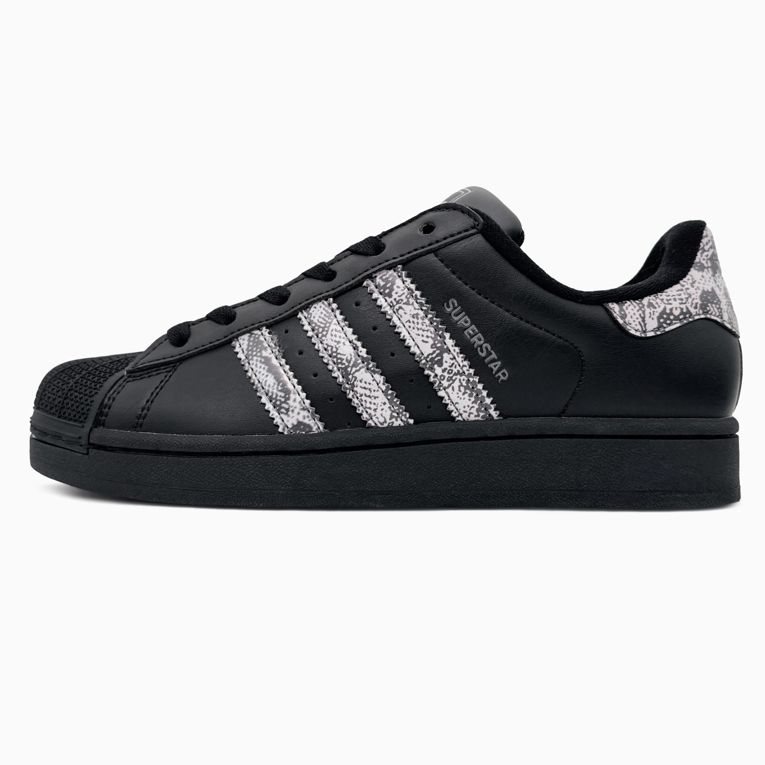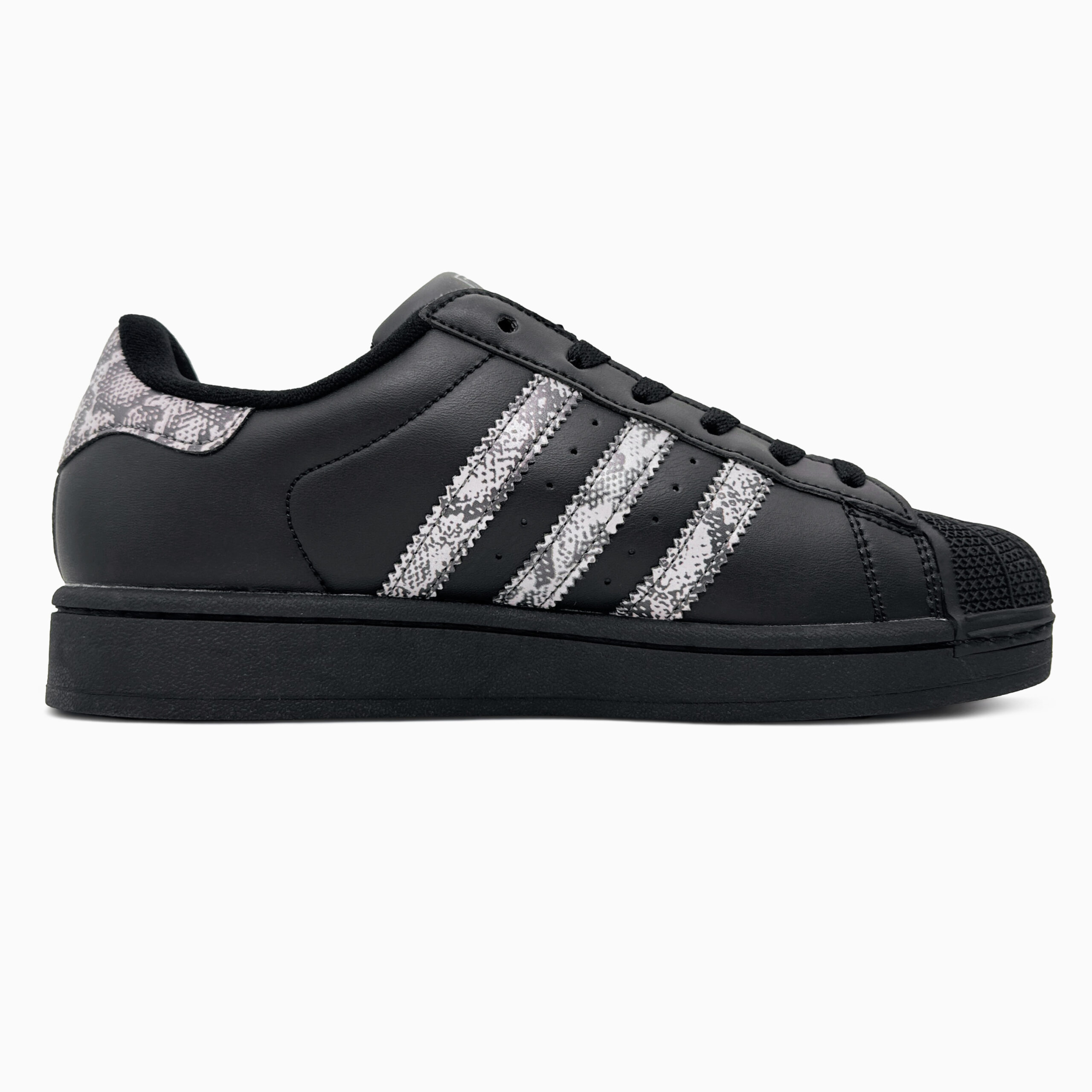 Adidas Superstar II Black Snakeskin — це стильні чорні кросівки з культовим силуетом Superstar, доповнені тисненням під зміїну шкіру для виразного та преміального вигляду.