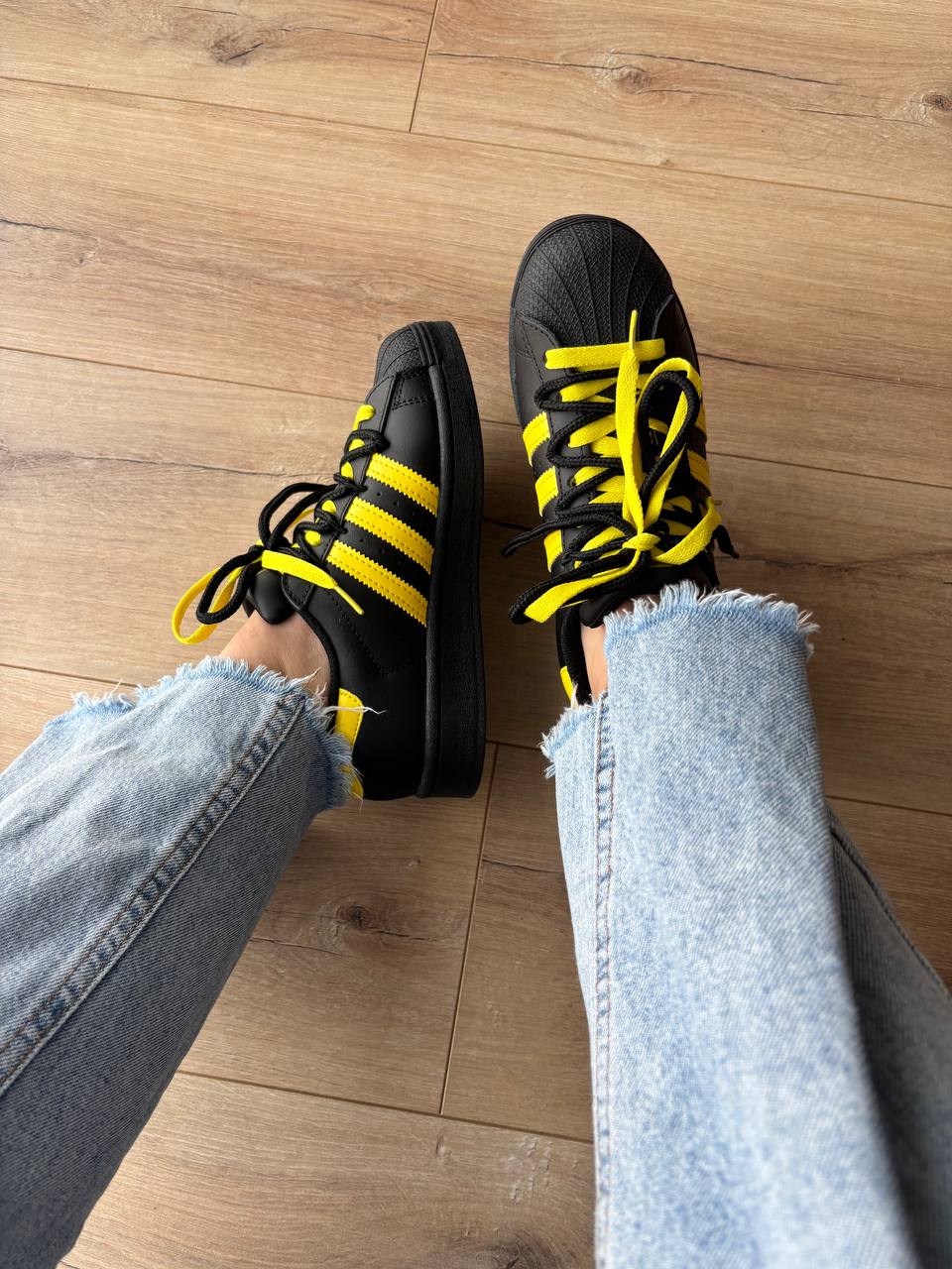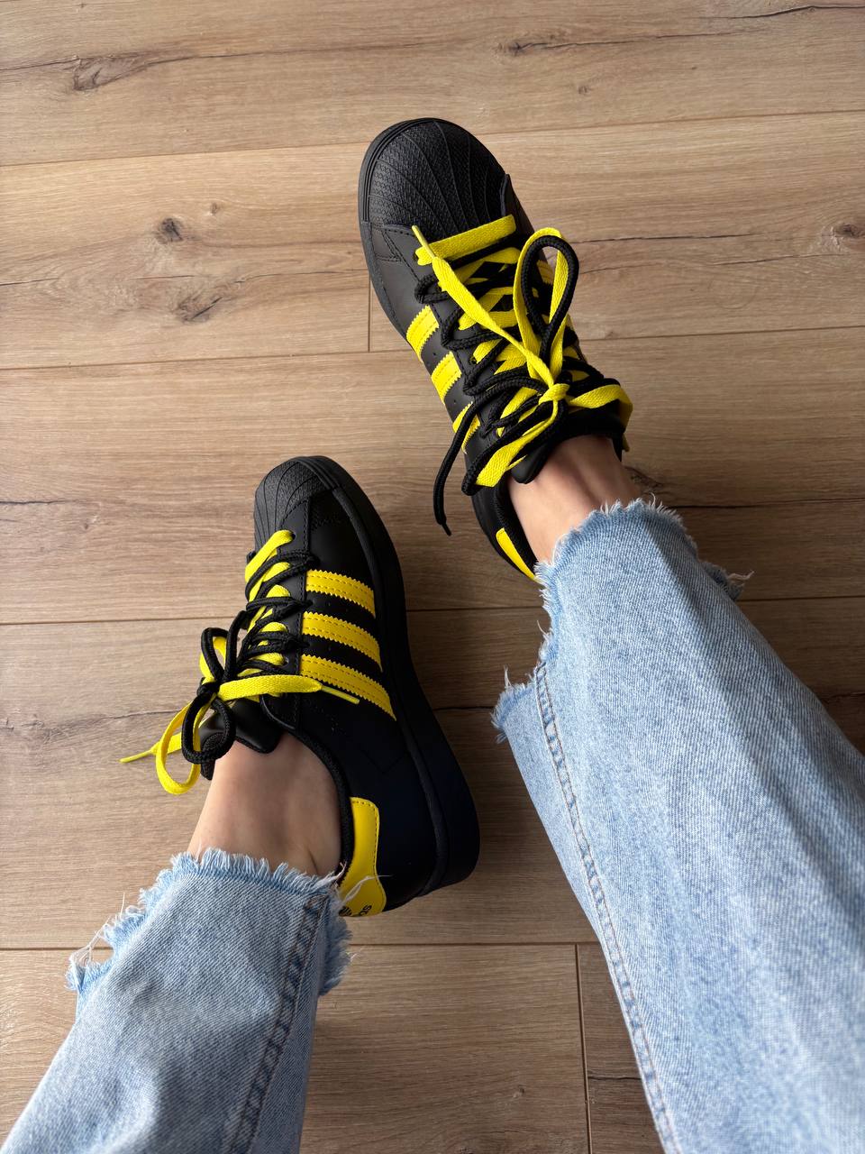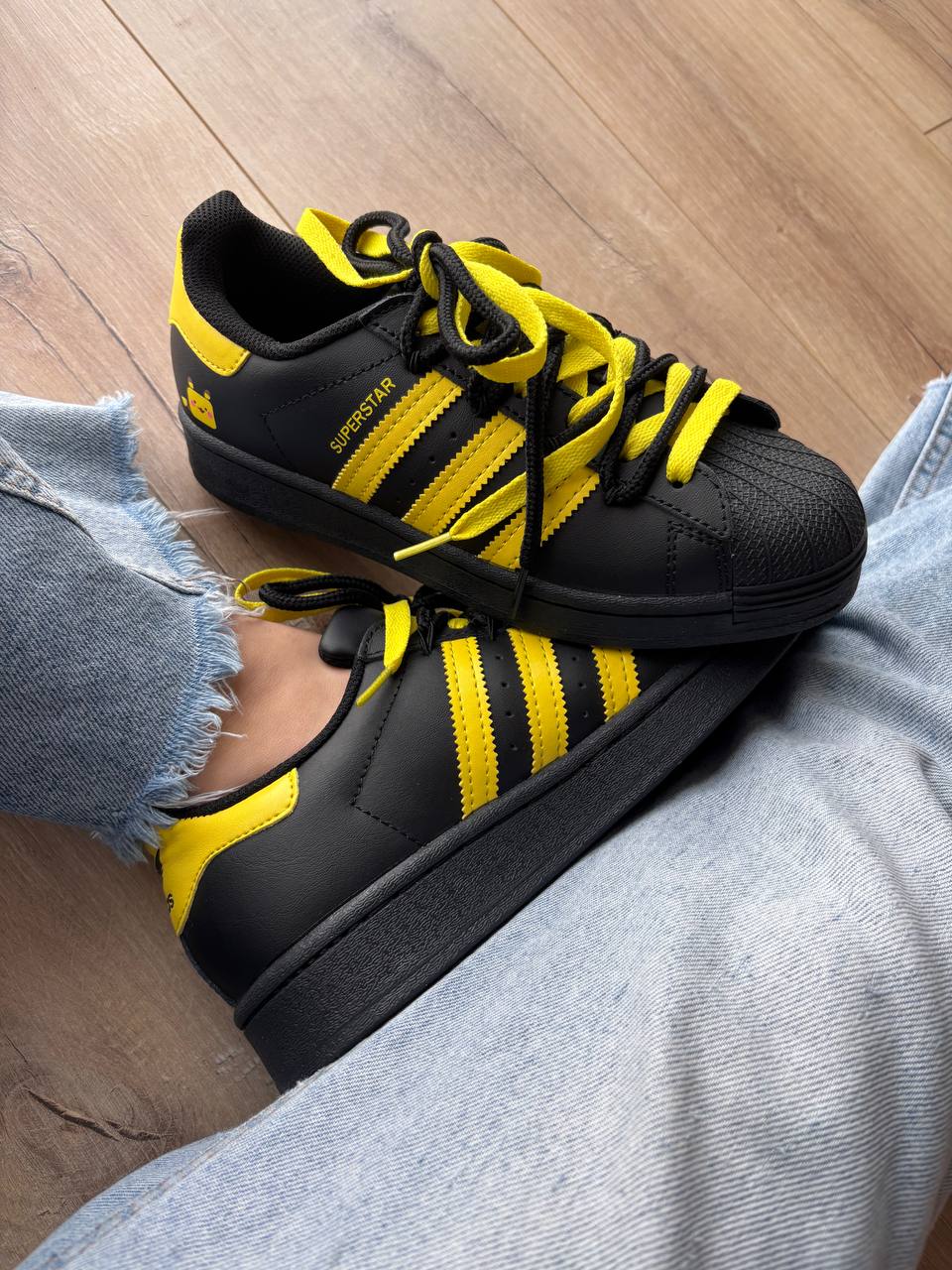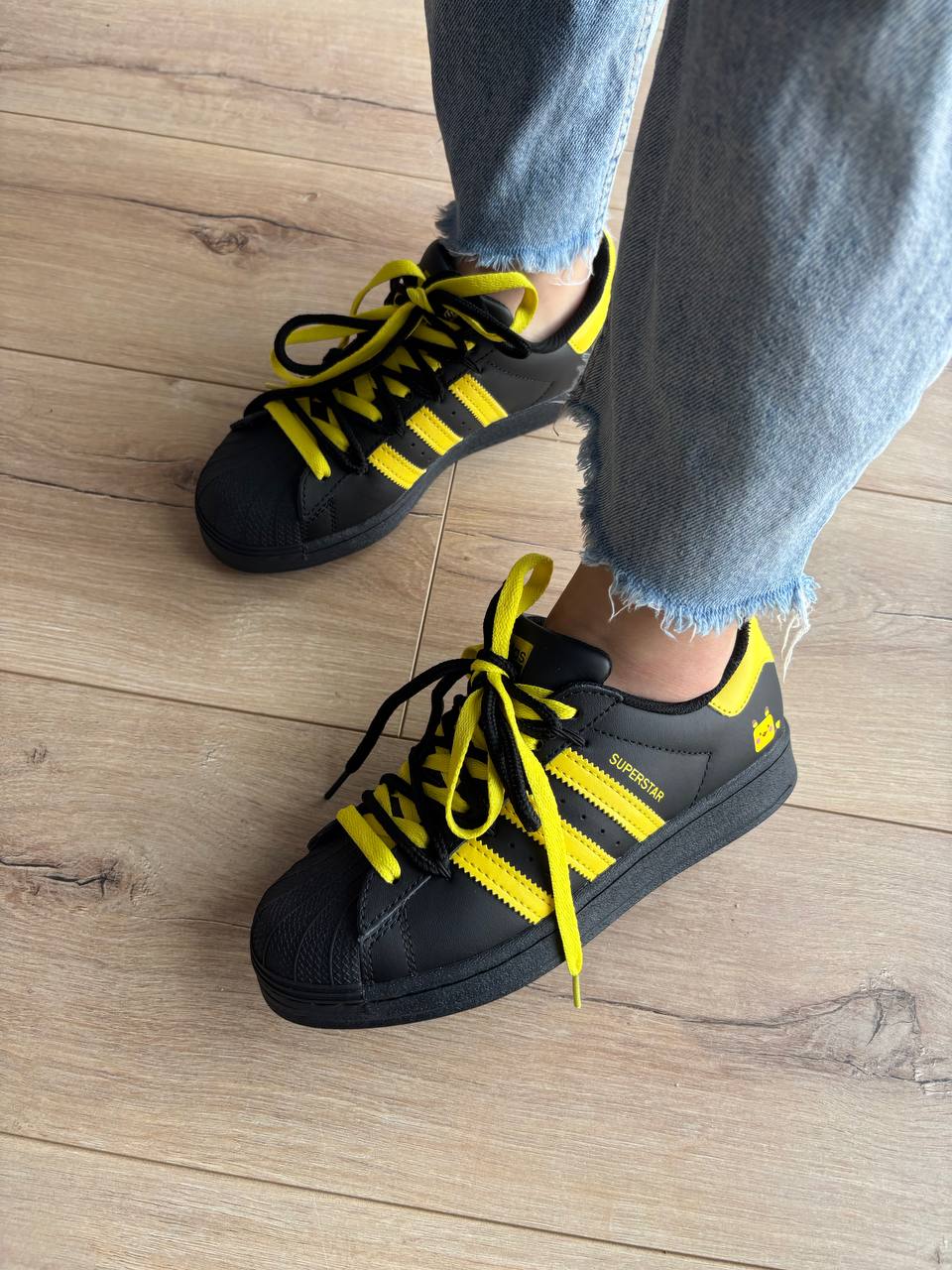 Adidas Superstar Pokémon Black Yellow Custom — це кастомні кросівки на базі класичної моделі Adidas Superstar у чорному та жовтому кольорах із дизайном, натхненним всесвітом Pokémon, що поєднує культовий «shell toe» та яскраві тематичні елементи