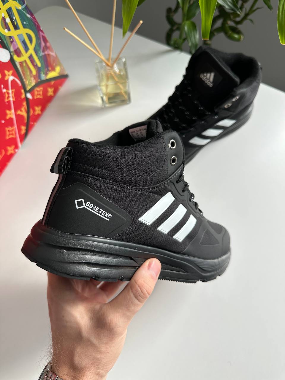 Adidas Terrex Black White Fur — це зимові трекінгові кросівки чорного кольору з білими акцентами та м’яким хутром усередині для тепла й комфорту в холодну погоду.