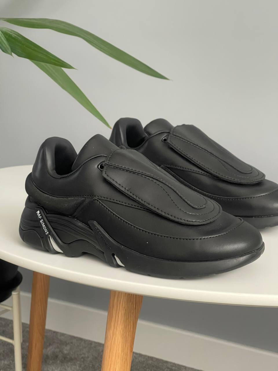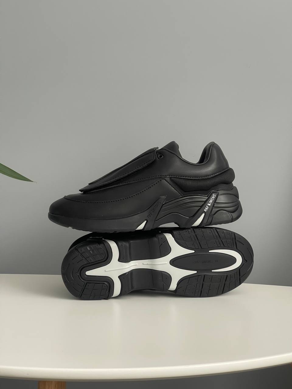 Adidas x Raf Simons Antei Black — це поєднання мінімалістичного дизайну та авангардного бачення, характерного для колаборацій із Рафом Сімонсом. Глибокий чорний колір підкреслює стриманість моделі, а чисті лінії та силует додають їй сучасного, концептуального вигляду.