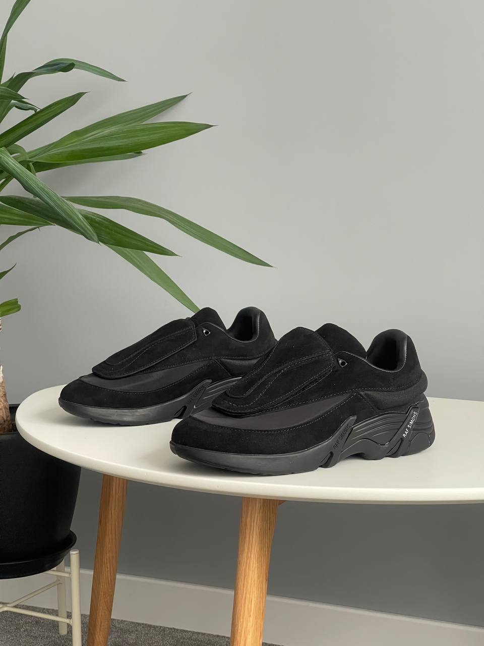 Adidas x Raf Simons Antei Black Suede — це поєднання мінімалістичного силуету та преміальних матеріалів. Замшева текстура в глибокому чорному кольорі додає моделі елегантності й виразності, а характерний дизайн колаборації з Рафом Сімонсом підкреслює її унікальний стиль і сучасний настрій.