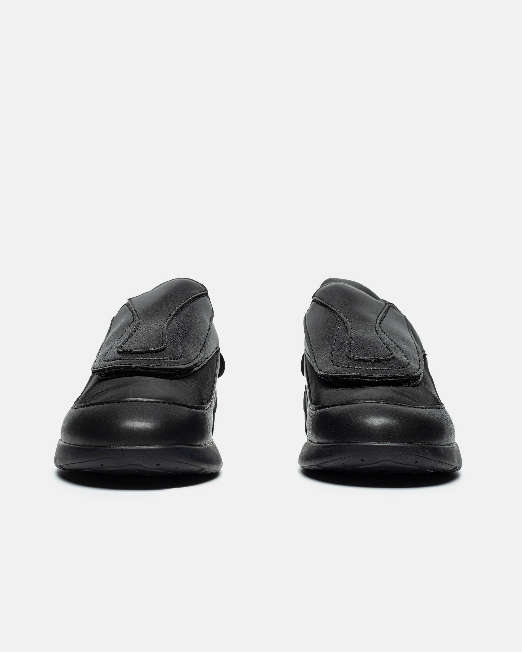 Adidas x Raf Simons Antei Black — чорні футуристичні кросівки з колаборації Adidas і Raf Simons з обтічною силуетною формою, знімною шнурівкою-укриттям і масивною гумовою підошвою, що поєднують avant-garde стиль із повсякденним комфортом.