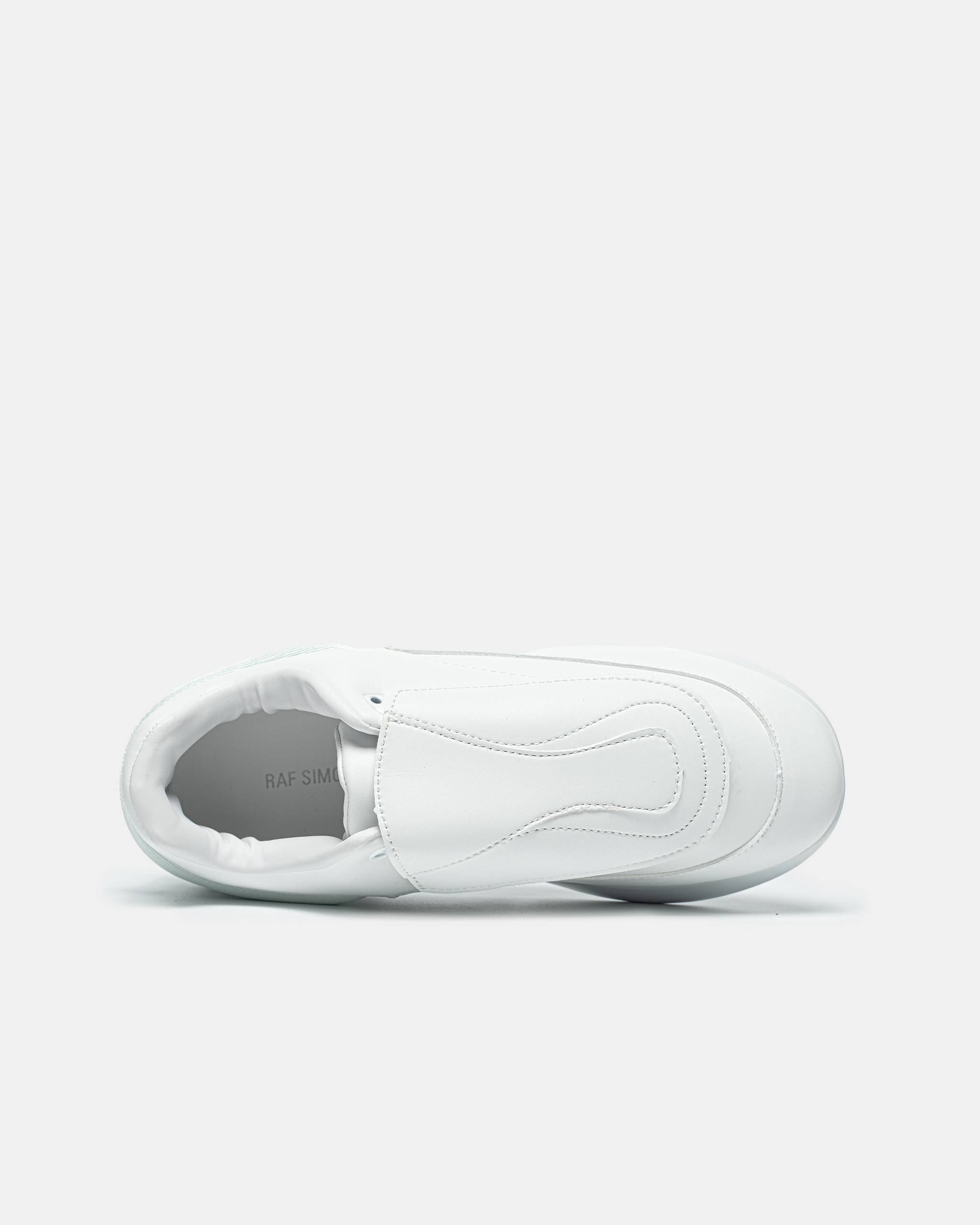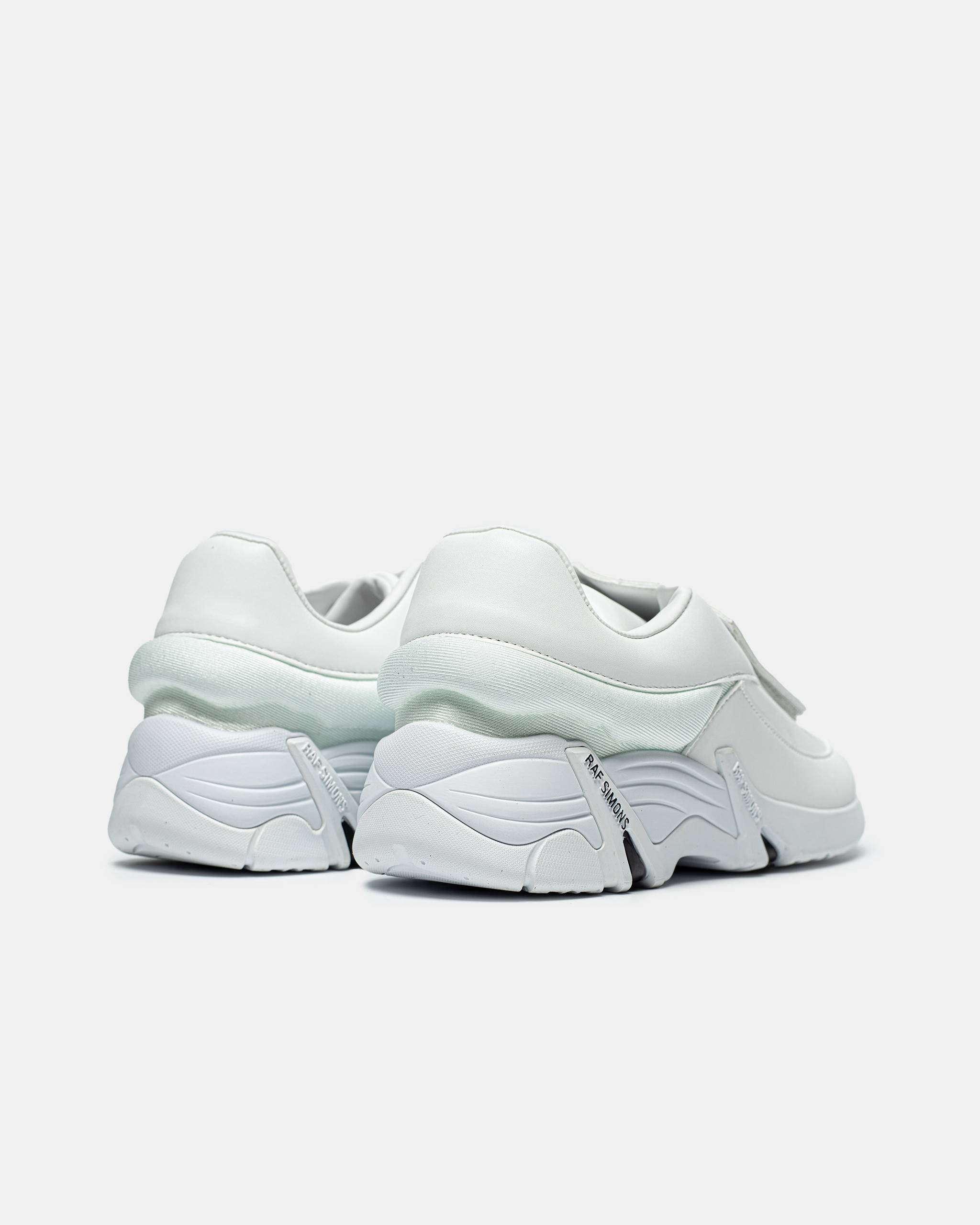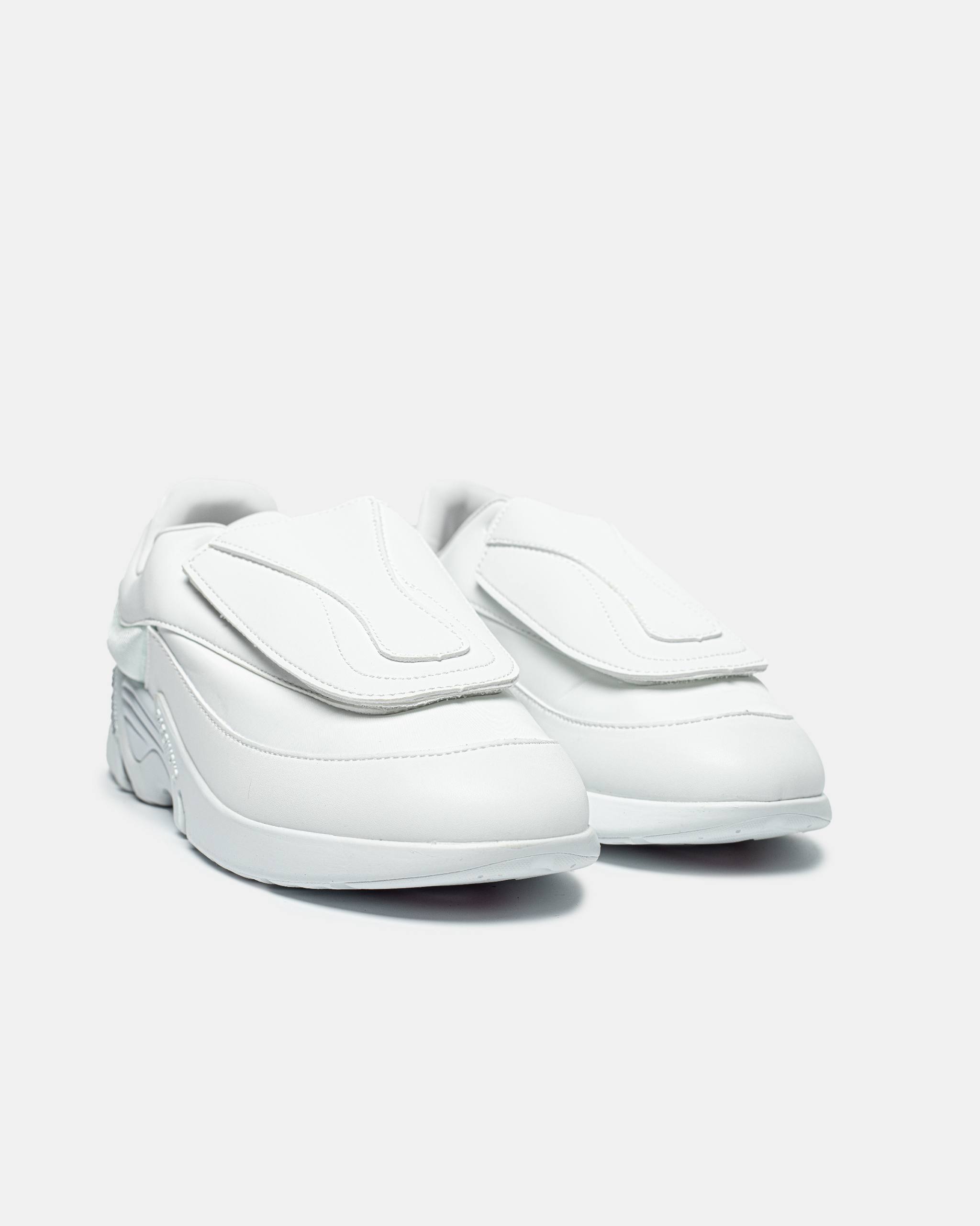 Adidas x Raf Simons Antei White — мінімалістичні кросівки у чисто білому дизайні з поєднанням шкіри, текстилю та знімними PVC-панелями для шнурівки, які створюють сучасний авангардний силует і комфортну повсякденну посадку.