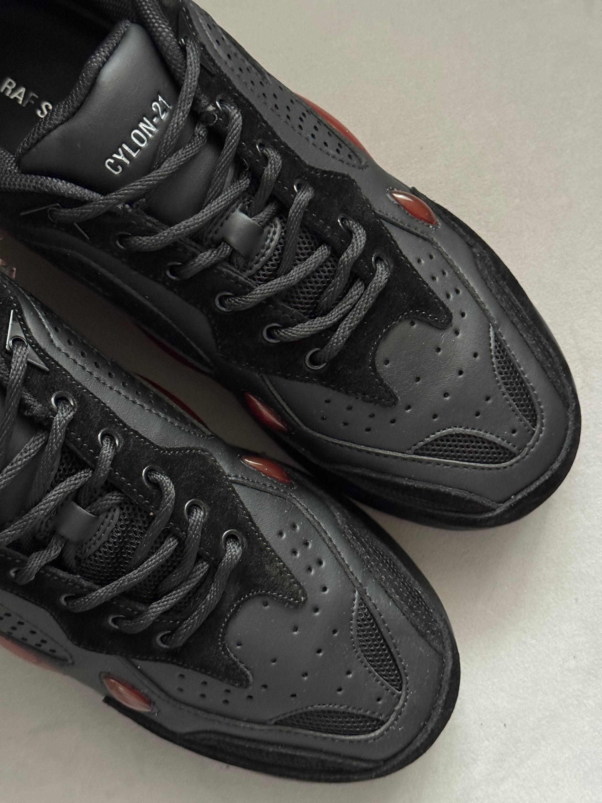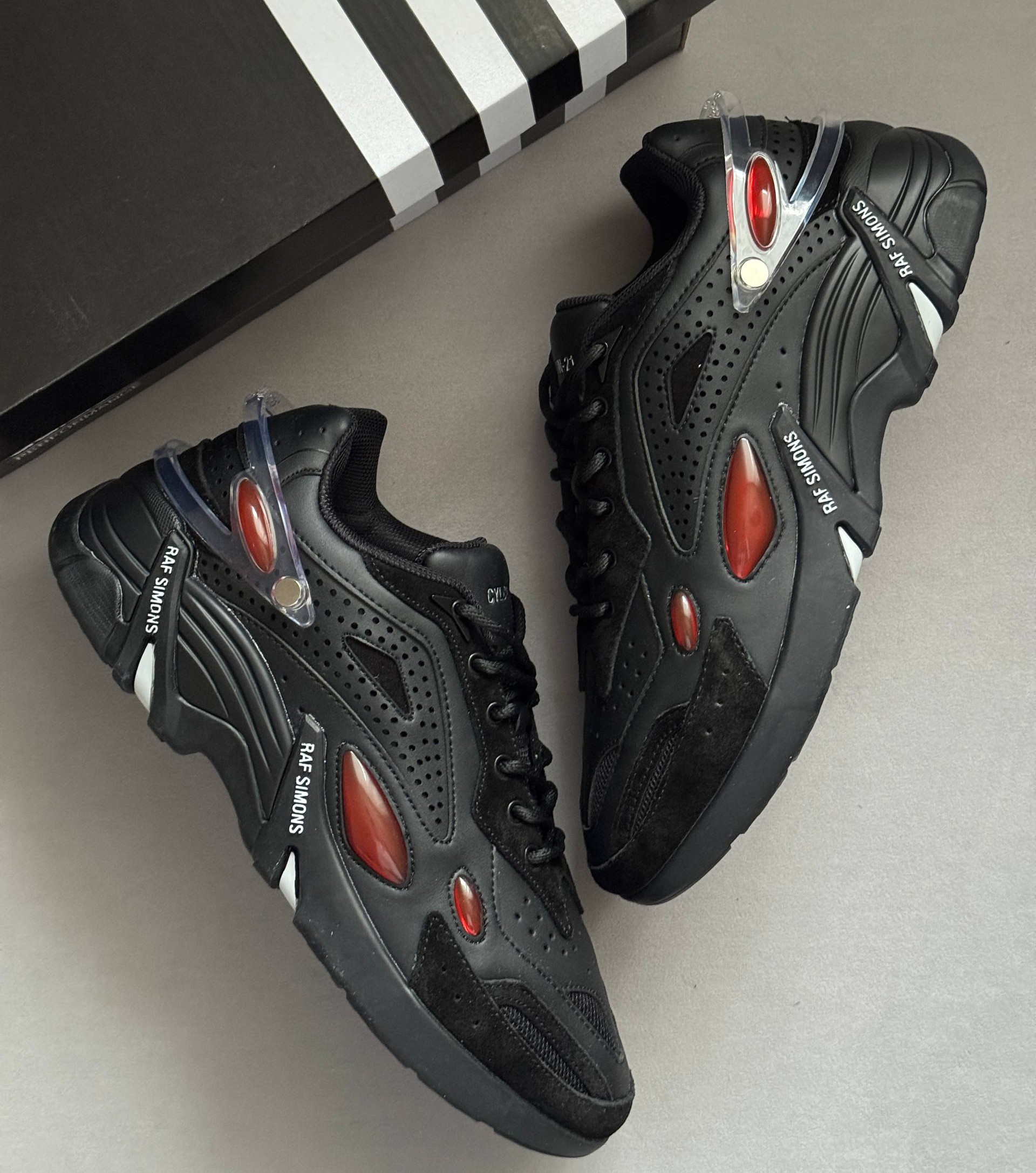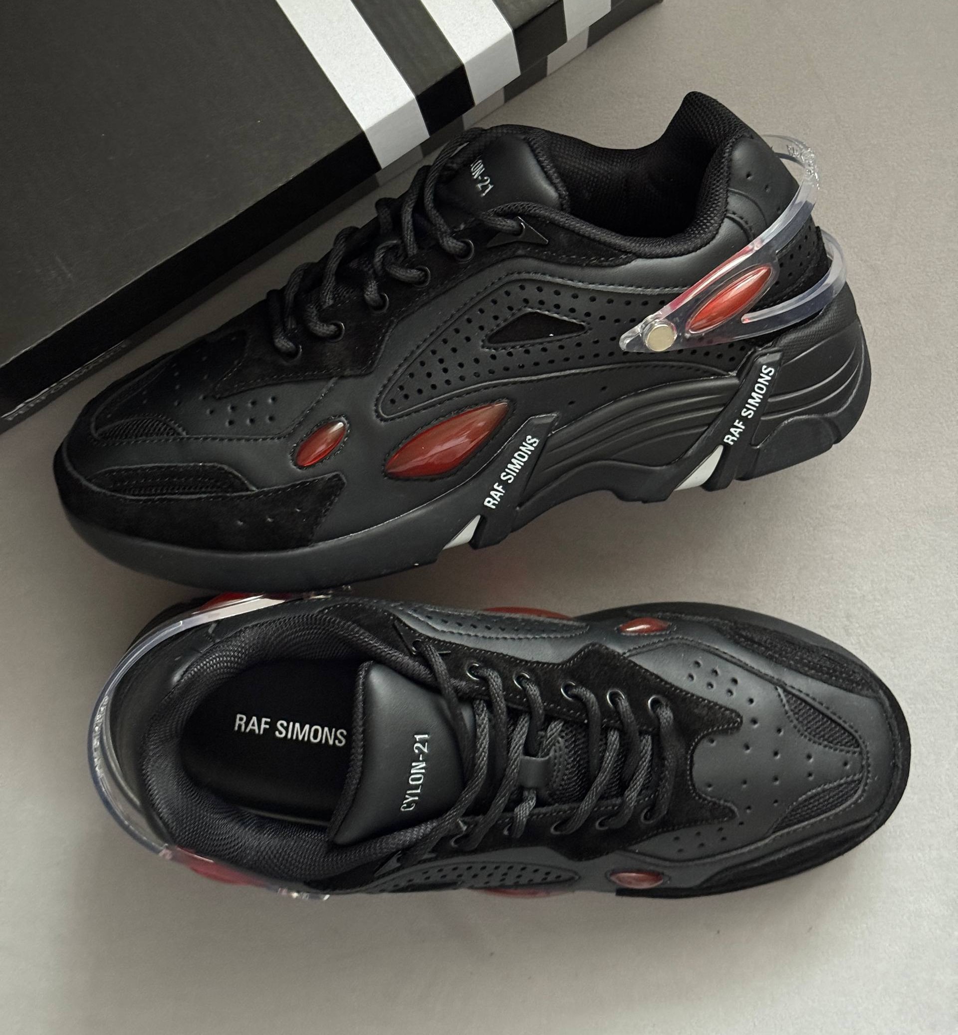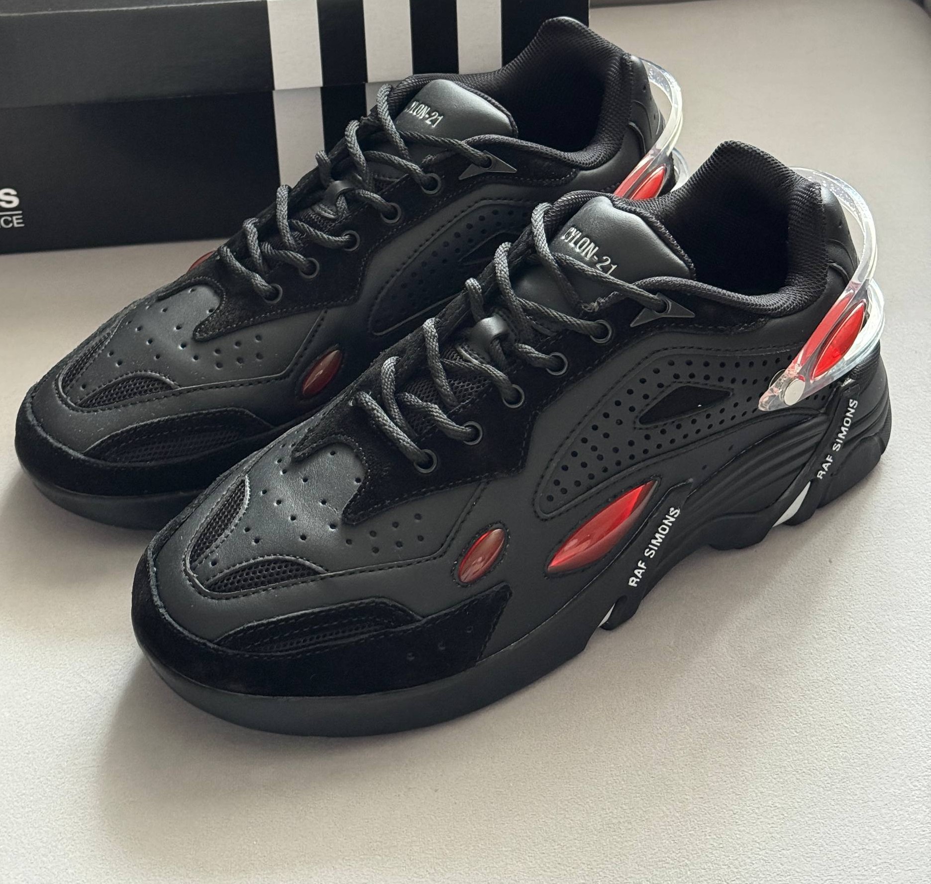 Adidas x Raf Simons Cylon-21 Black Red — це авангардні кросівки з масивним футуристичним силуетом, контрастом чорного й червоного та сміливим дизайнерським підходом Рафа Сімонса.