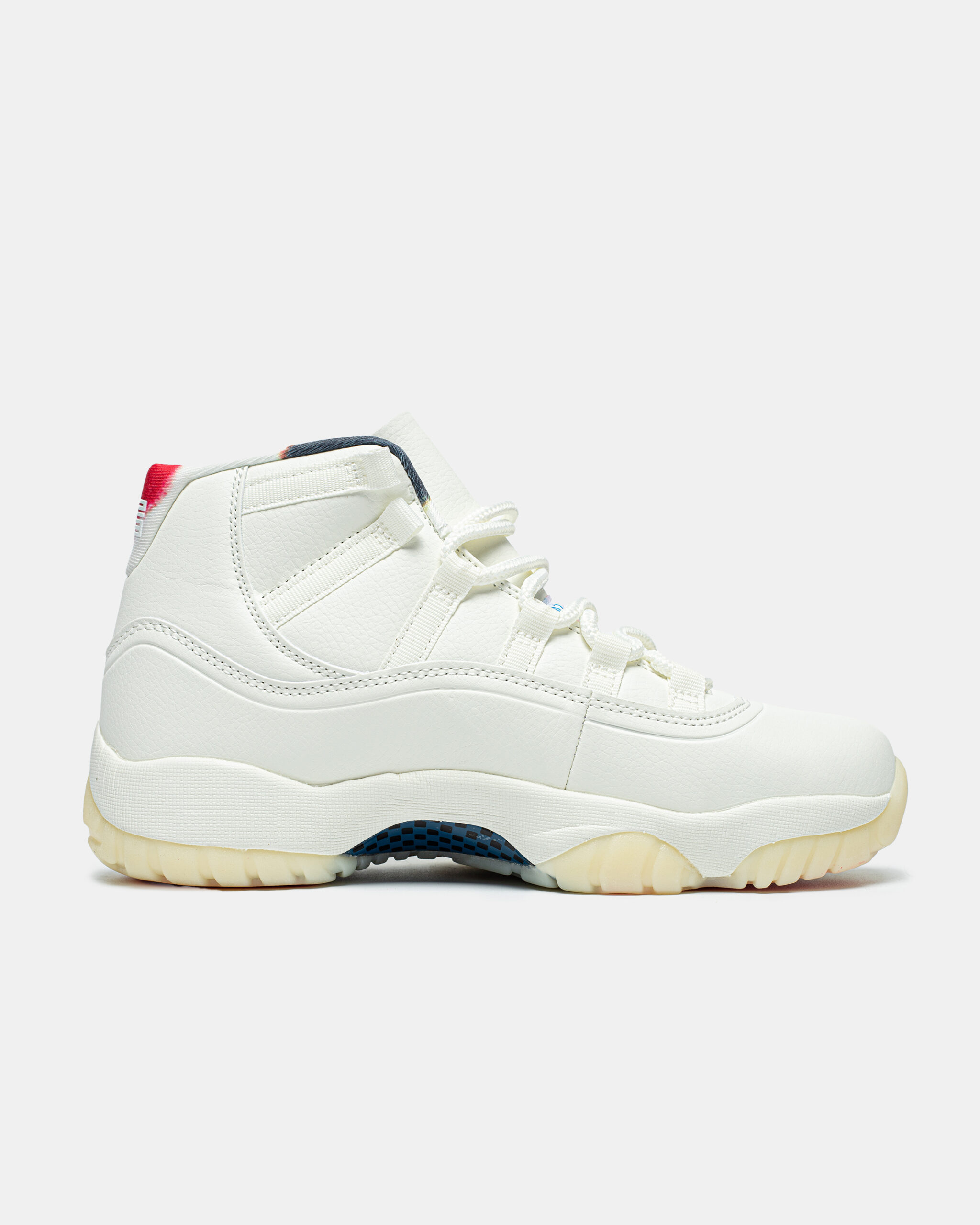 Air Jordan 11 Retro 285 — це обмежена міська версія легендарної силуету з білою верхньою частиною зі шкіри, натхненною кільцевою автомагістраллю Атланти, з барвистими внутрішніми деталями, що віддають данину місцевій культурі та святкують спадщину моделі.