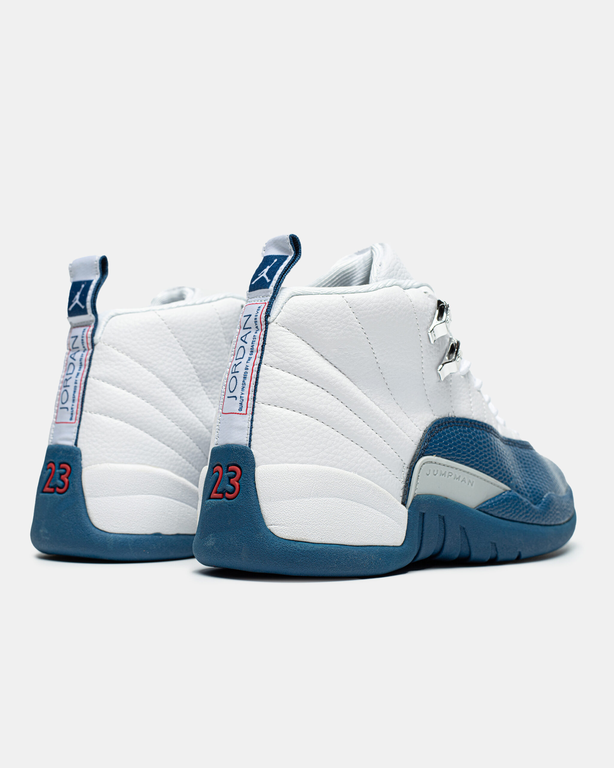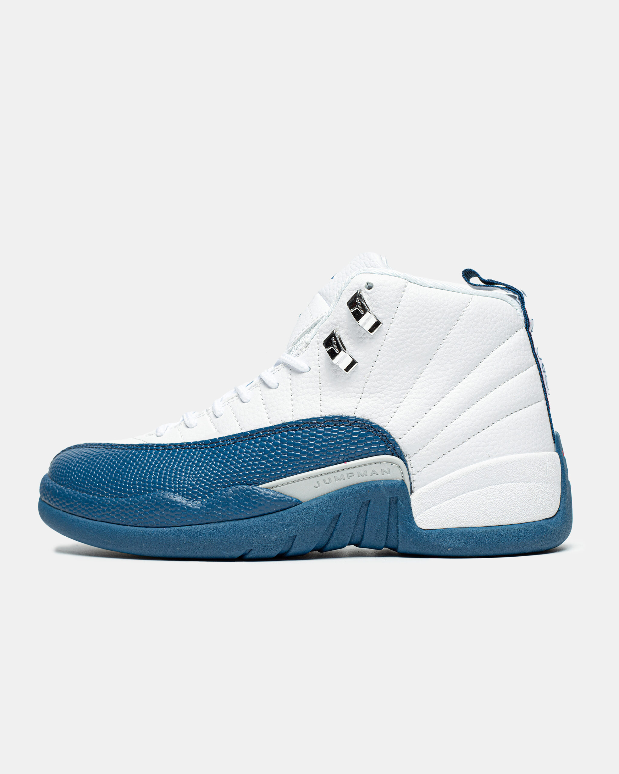 Air Jordan 12 Retro “French Blue” — класичні високі кросівки Air Jordan 12 у білому та «French Blue» дизайні з преміальною шкірою, яскравими синіми акцентами й червоними деталями, що поєднують ретро-стиль і спортивну зручність.