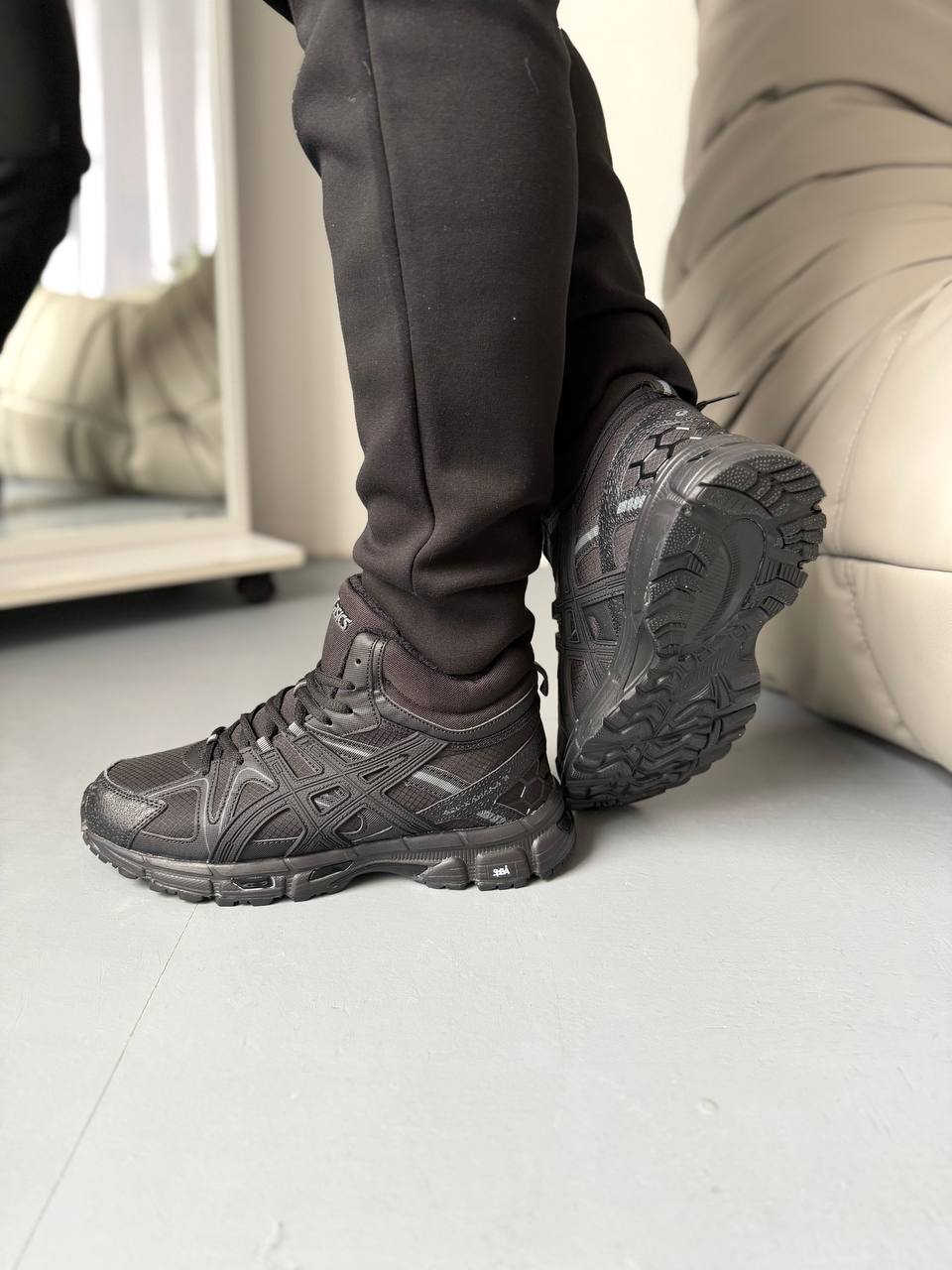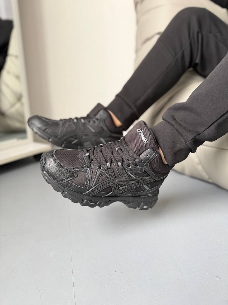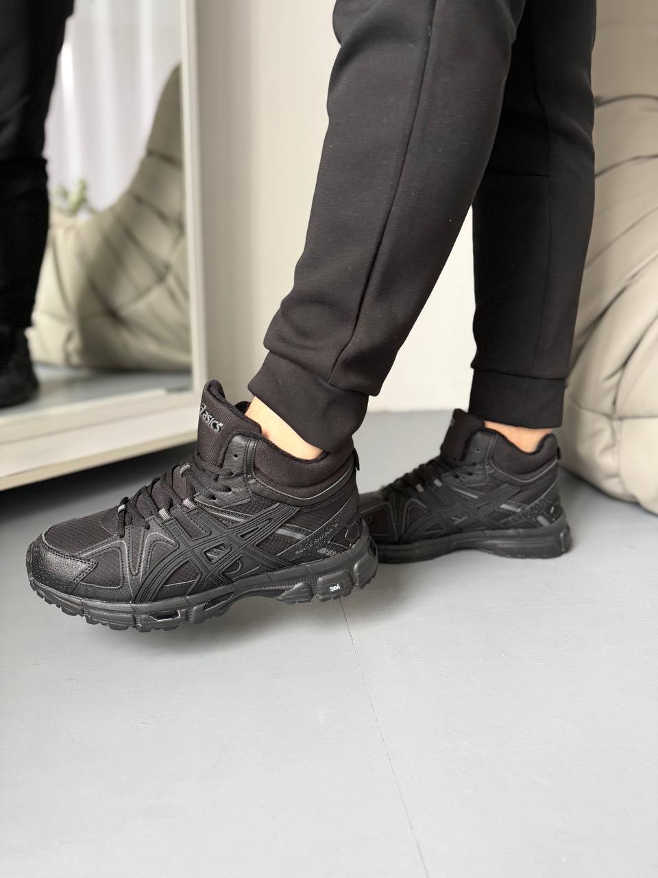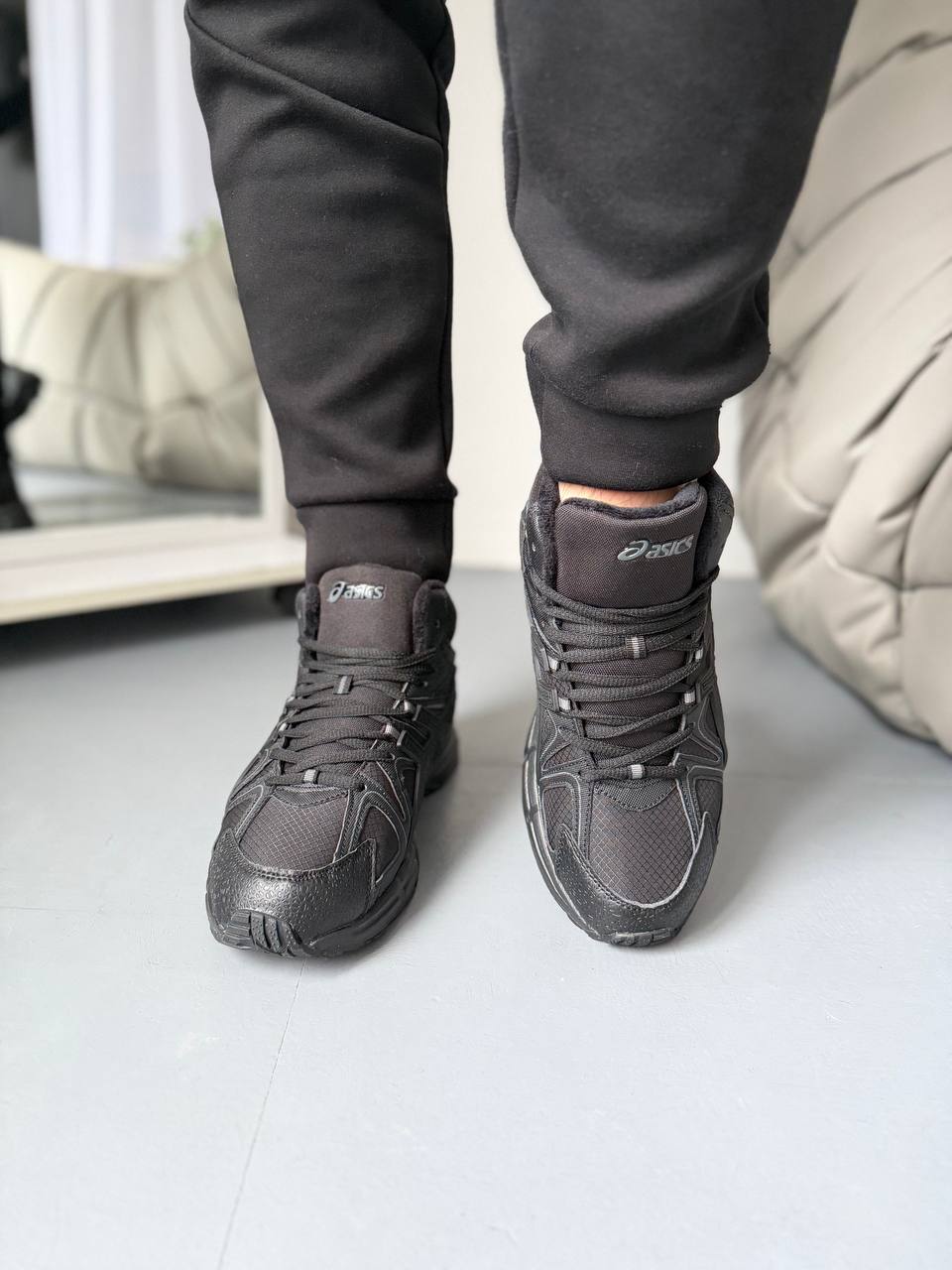 Asics Gel-Kahana 8 High Black Fur — це високі зимові кросівки з теплою хутряною підкладкою, міцним верхом і технологією GEL для амортизації, що забезпечують комфорт, підтримку та надійне зчеплення на холодну пору року в чор­ному дизайні.