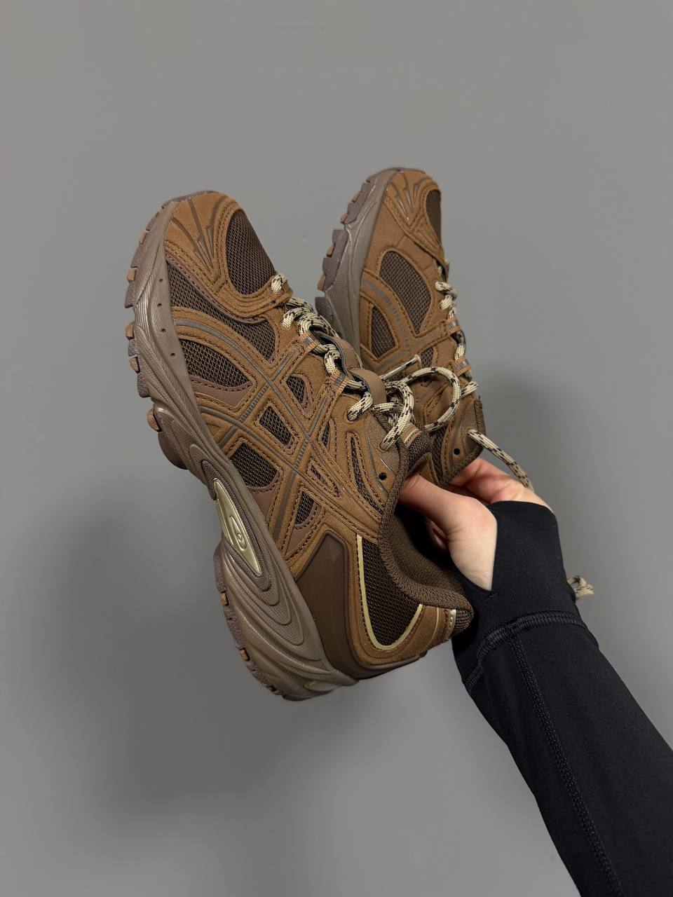Asics Gel-Kahana TR Nexus Brown — це міцні трейлові кросівки в коричневій гамі з технологією амортизації Gel, які поєднують надійне зчеплення, підтримку та стиль для активного повсякденного використання.