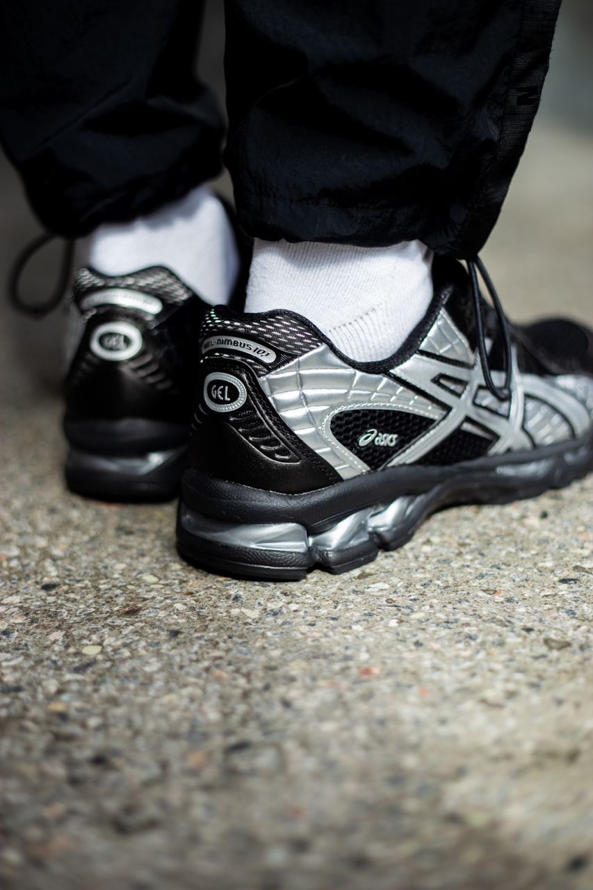 Asics Gel-Nimbus 10.1 Black Silver — це поєднання технологічного бігового силуету, стриманого монохромного дизайну та щоденного комфорту. Чорна основа з сріблястими акцентами створює сучасний, динамічний вигляд, а фірмова амортизація GEL забезпечує м’якість, підтримку та комфорт під час руху.