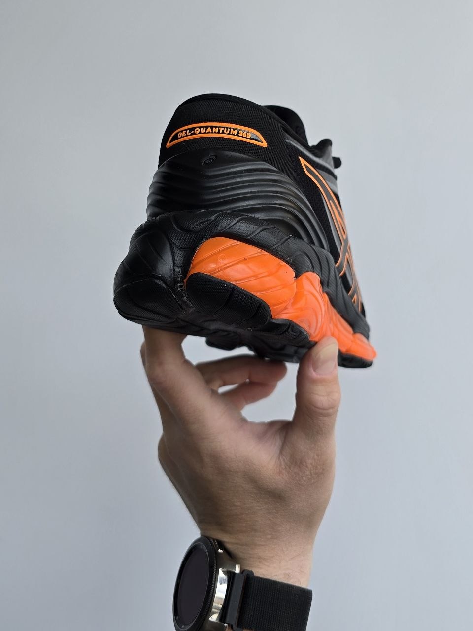 Asics Gel-Quantum 360 Black Orange — це поєднання технологічного силуету, динамічного контрастного дизайну та щоденного комфорту. Чорна основа з яскравими помаранчевими акцентами створює енергійний, сучасний образ, а фірмова амортизація GEL на 360° забезпечує м’якість і стабільність під час руху.