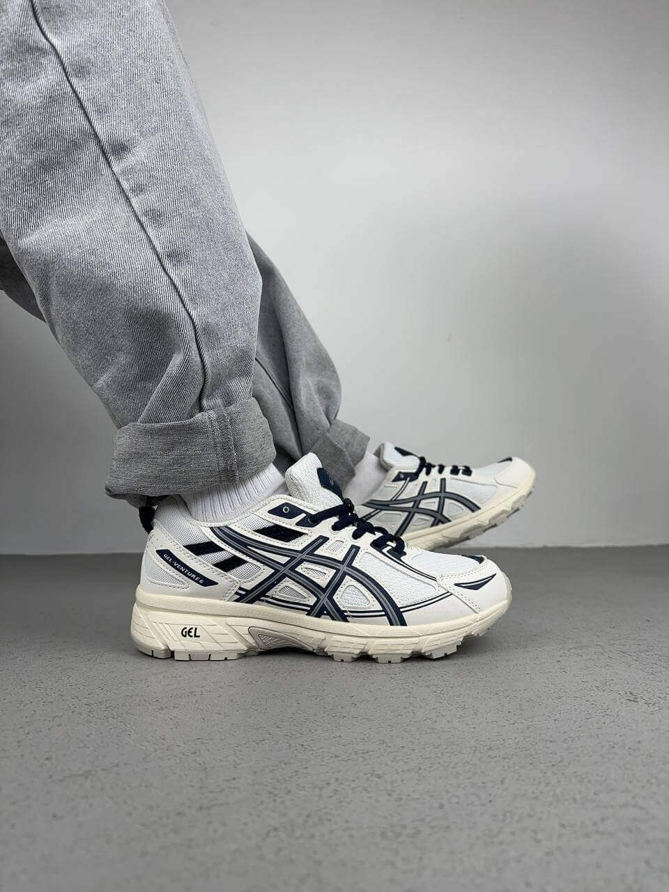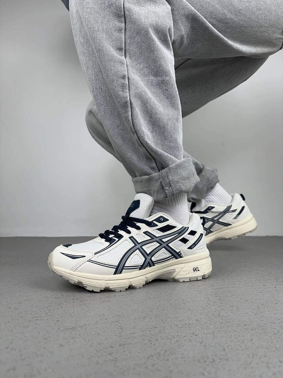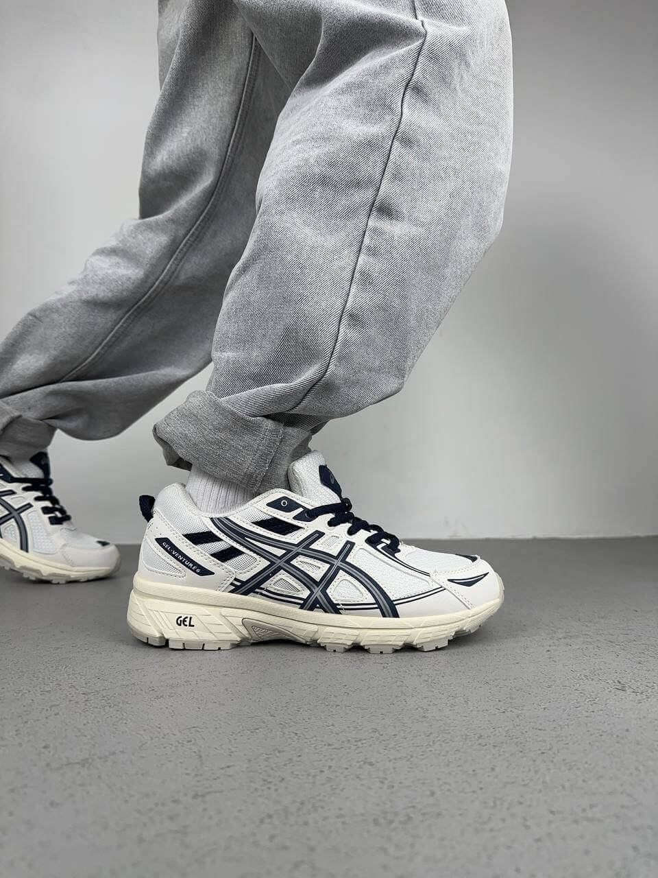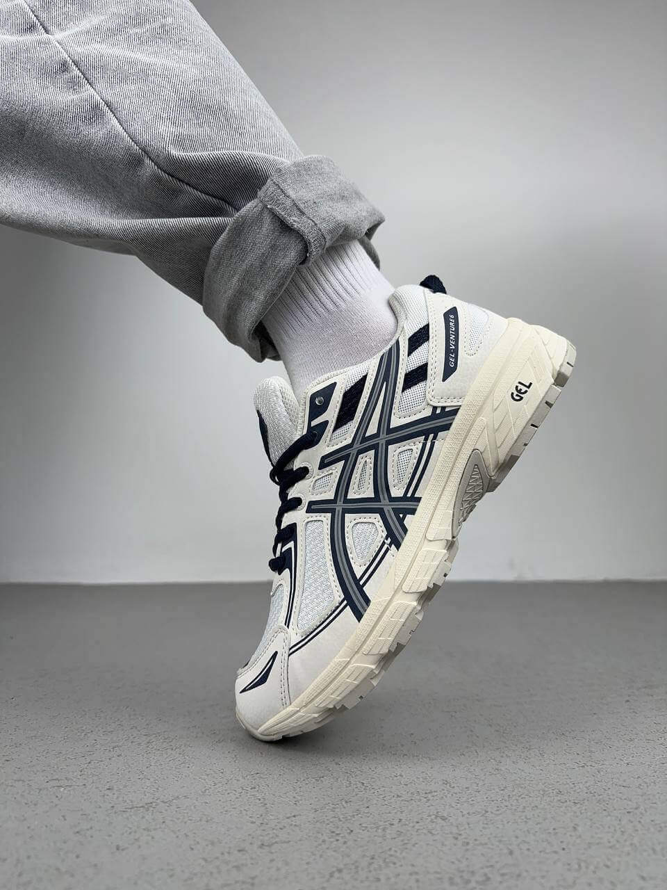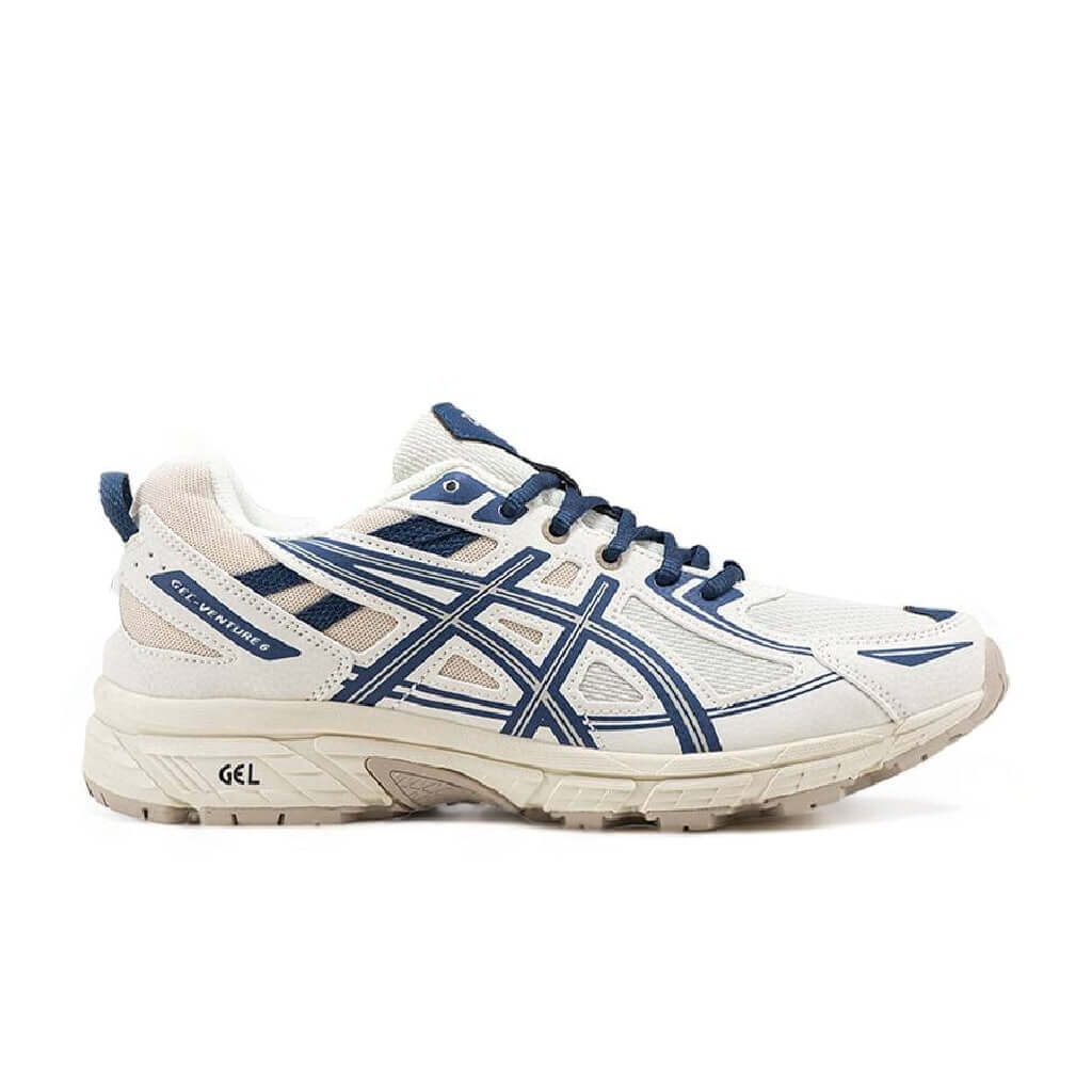 Asics Gel Venture 6 Beige Blue — це поєднання практичного трейлового силуету, природної бежевої палітри з синіми акцентами та щоденного комфорту. Бежеві тони створюють універсальну основу образу, а сині деталі додають свіжості та спортивної виразності, підкреслюючи функціональний характер моделі.