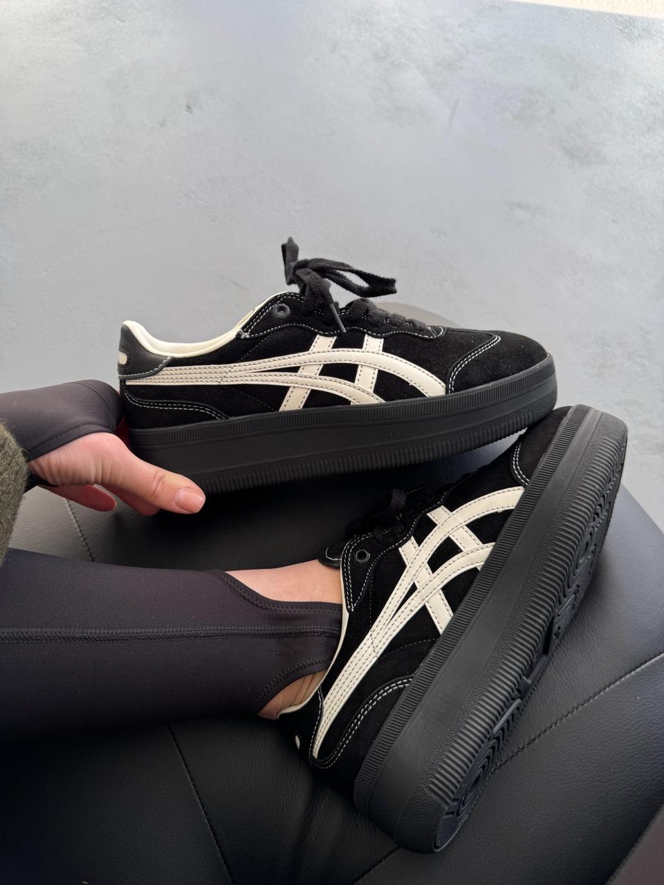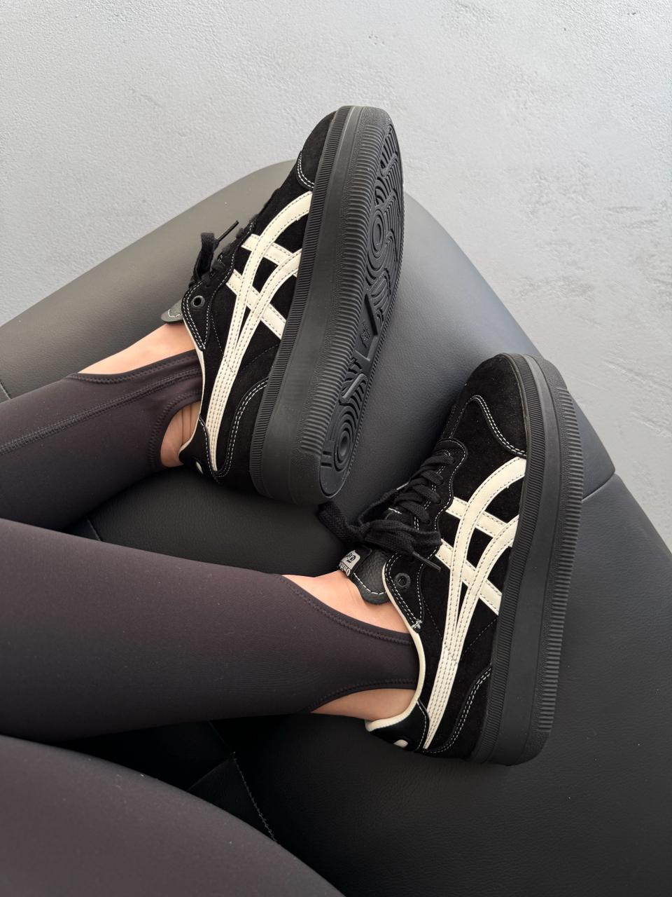 ASICS Onitsuka Tiger Tokuten Platform Black — це поєднання класичного силуету в стилі Onitsuka Tiger та сучасної платформи, що додає моделі виразності. Повністю чорна палітра створює лаконічний і універсальний образ, а підвищена підошва підкреслює трендовий характер і робить силует більш акцентним.