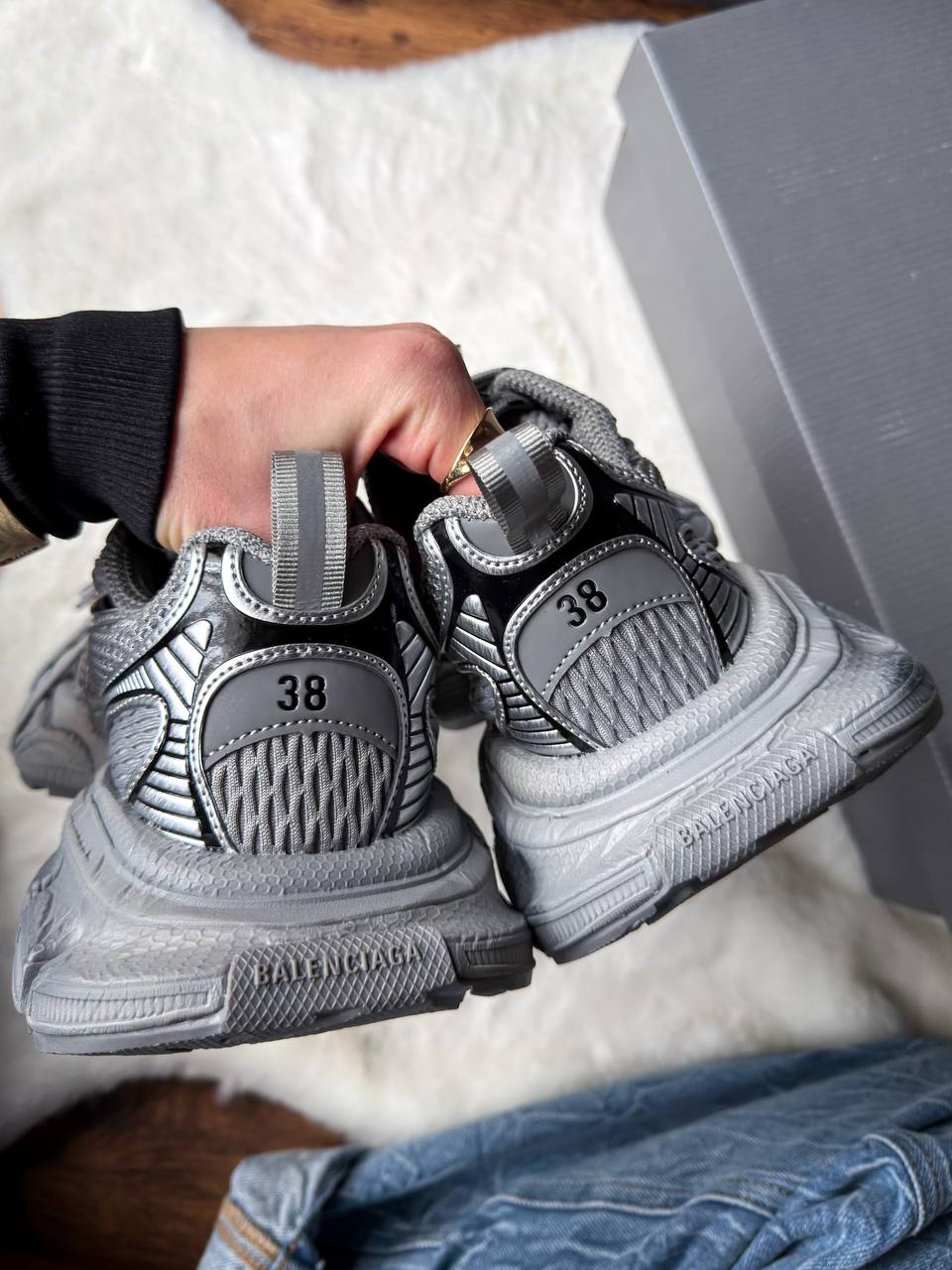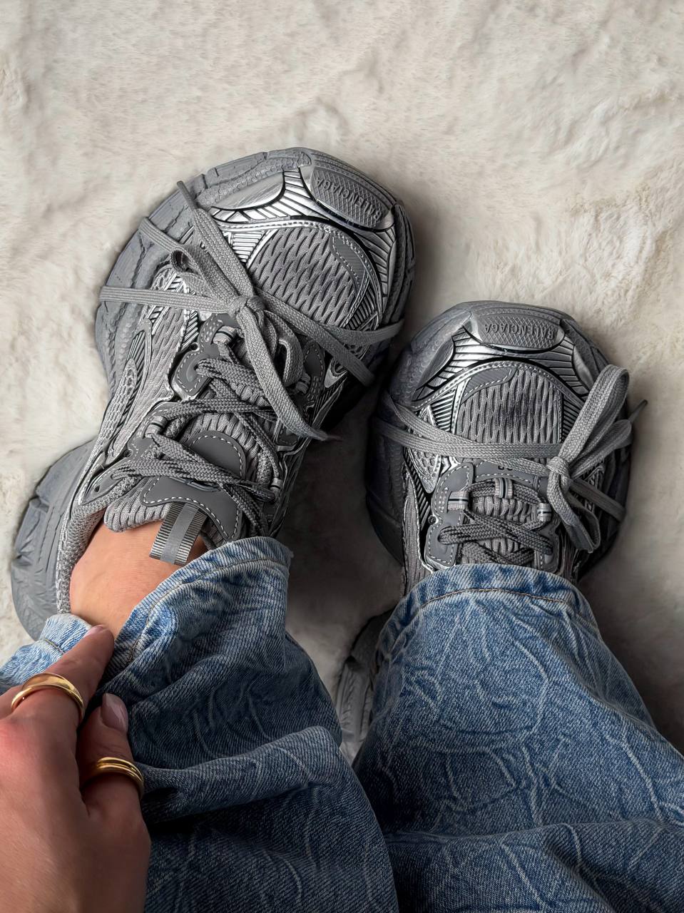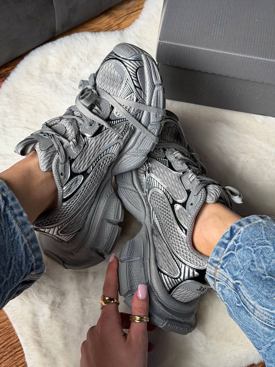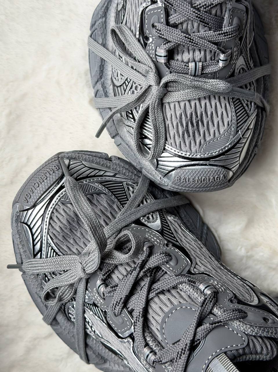 Balenciaga 3XL Extreme Lace Grey — це поєднання масивного футуристичного силуету, багатошарової сірої палітри та виразного дизайнерського підходу. Сірі відтінки створюють глибокий, технічний образ, а exaggerated конструкція та шнурівка підкреслюють авангардний характер моделі.