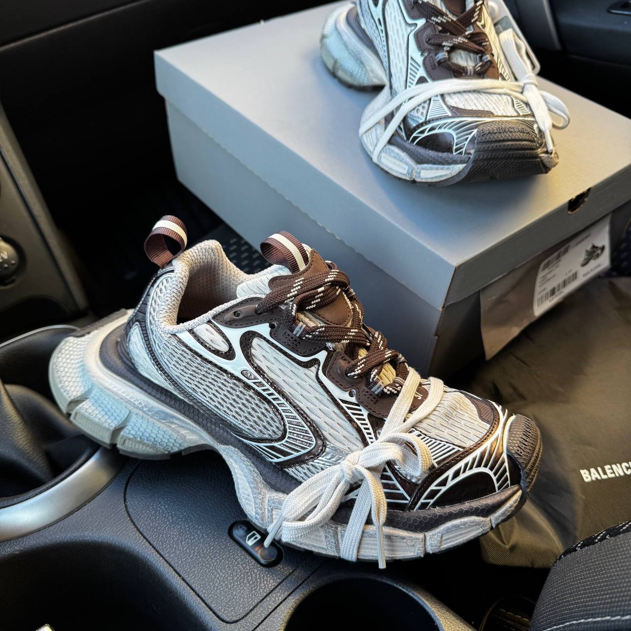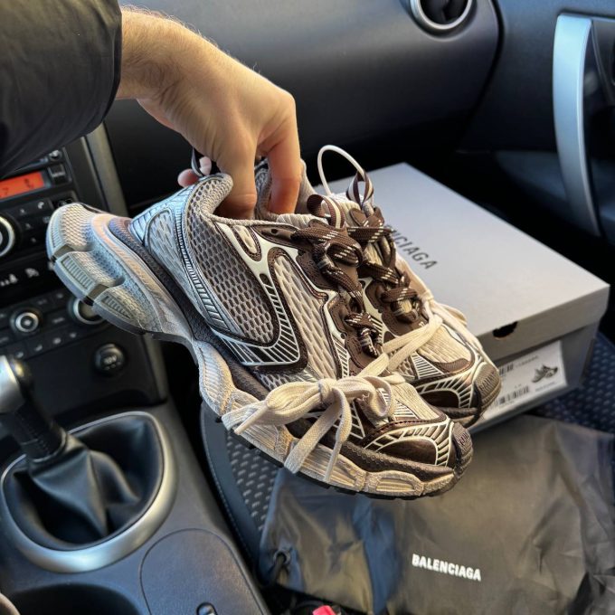 Balenciaga 3XL Silver Brown — це стильні кросівки з унікальним дизайном, поєднуючи металеві та коричневі елементи для створення футуристичного вигляду.