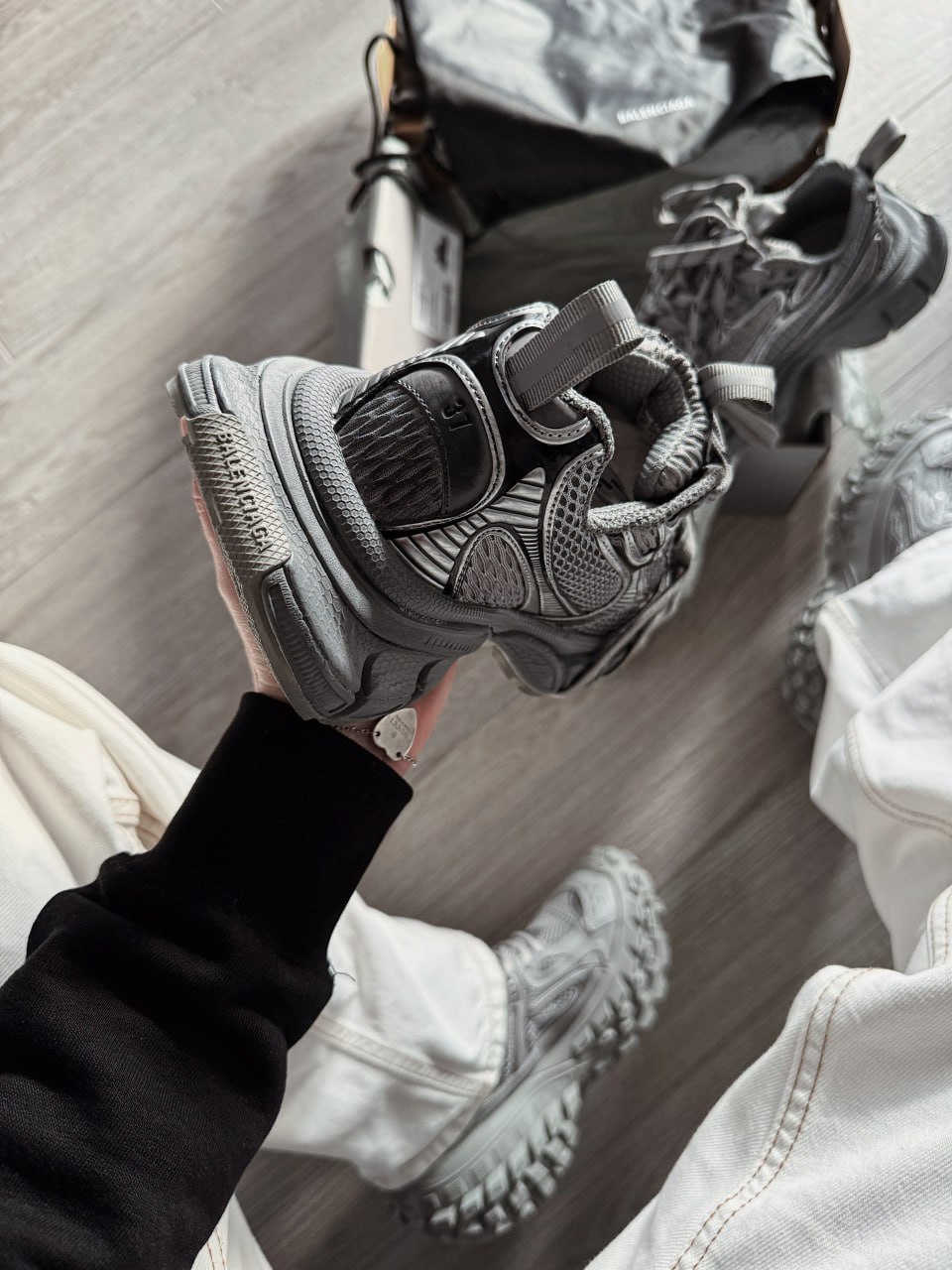 Balenciaga 3XL Sneaker in Grey/Black — це потужні кросівки з масивним дизайном у сірому та чорному кольорах, що поєднують інноваційний вигляд з високим рівнем комфорту.