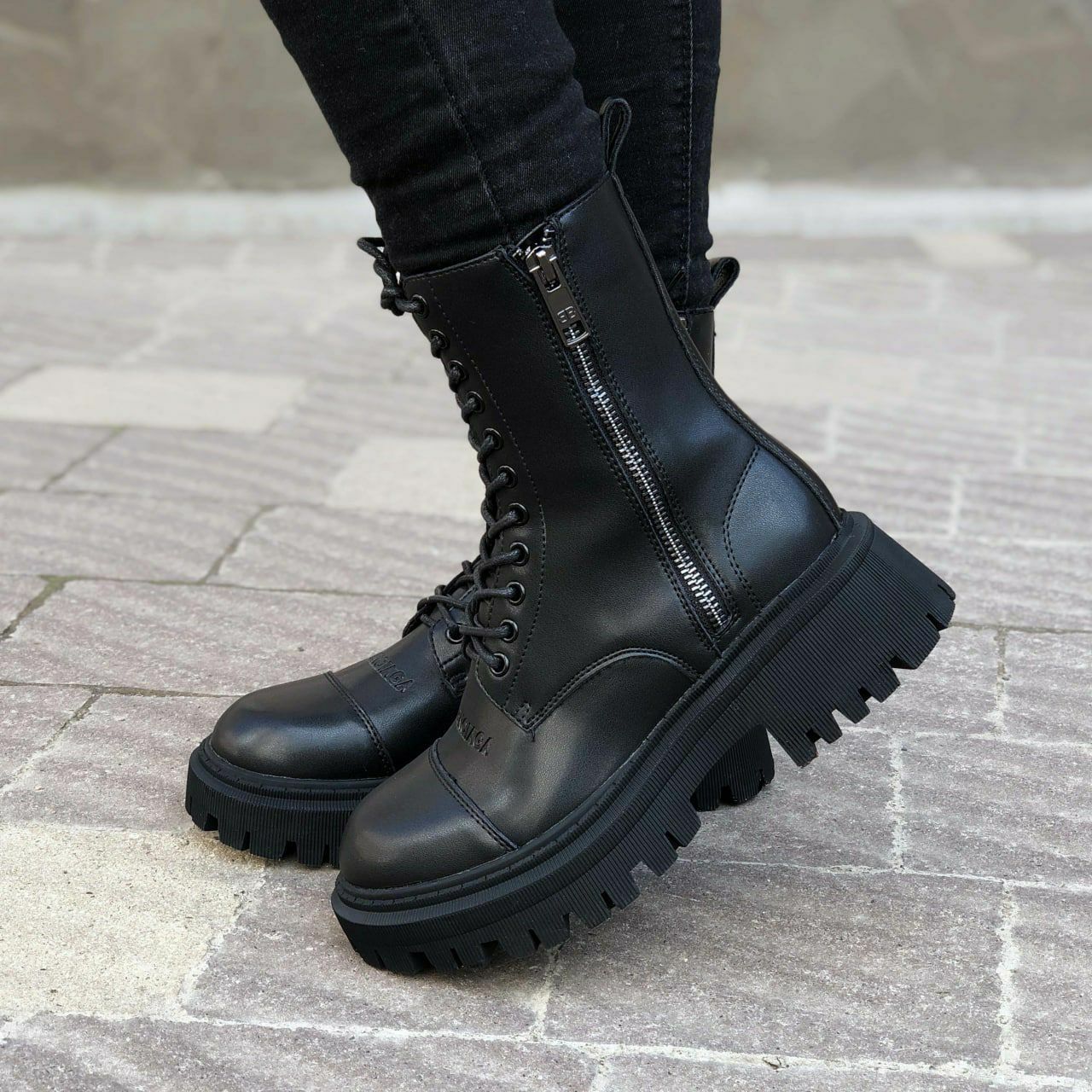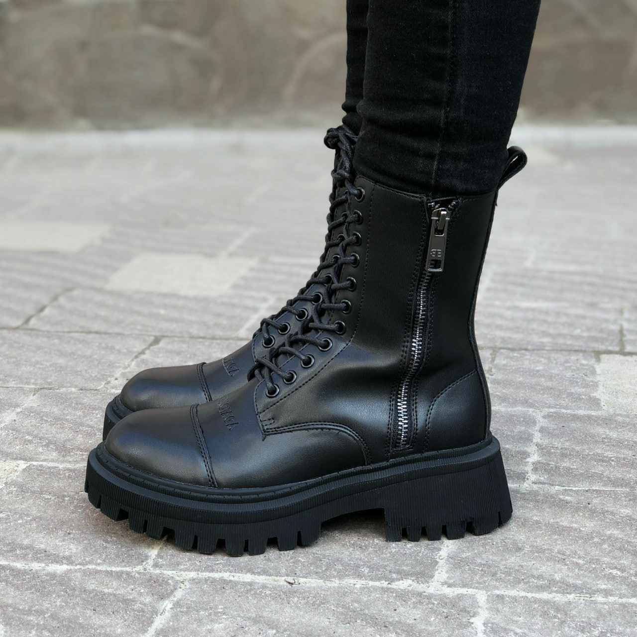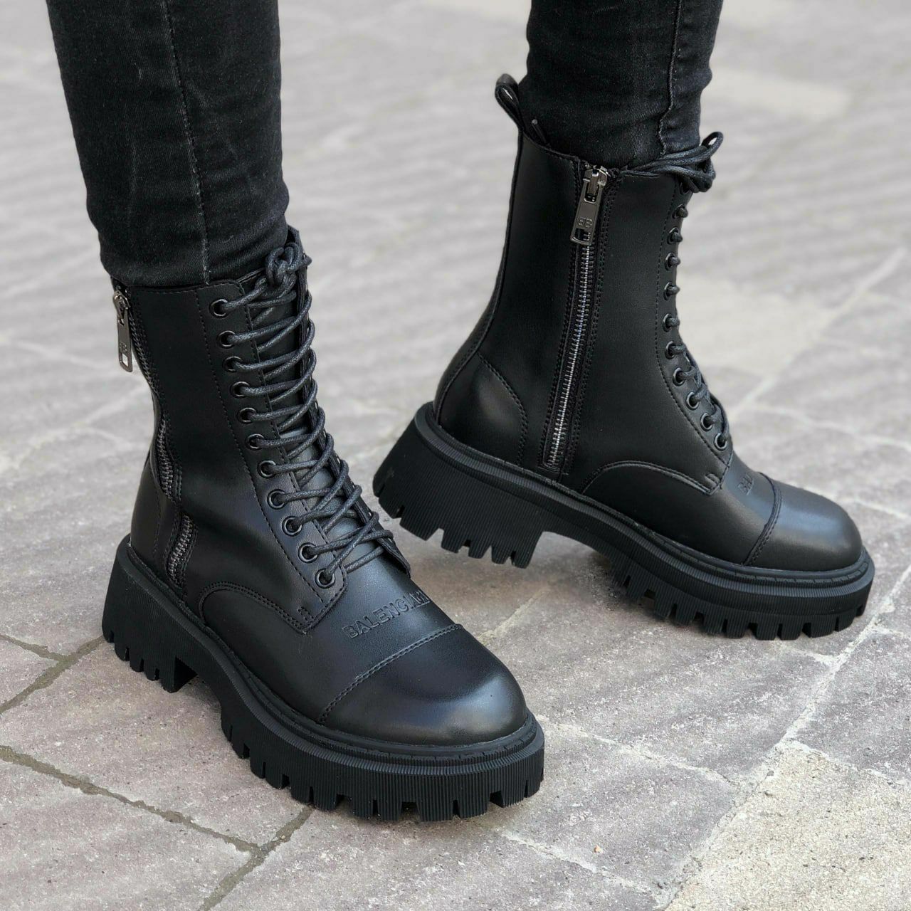 Balenciaga Black Tractor Side-Zip Boots — це масивні дизайнерські черевики з бічною блискавкою, виконані в мінімалістичному чорному кольорі, що поєднують преміальні матеріали, брутальний стиль і сучасну естетику.