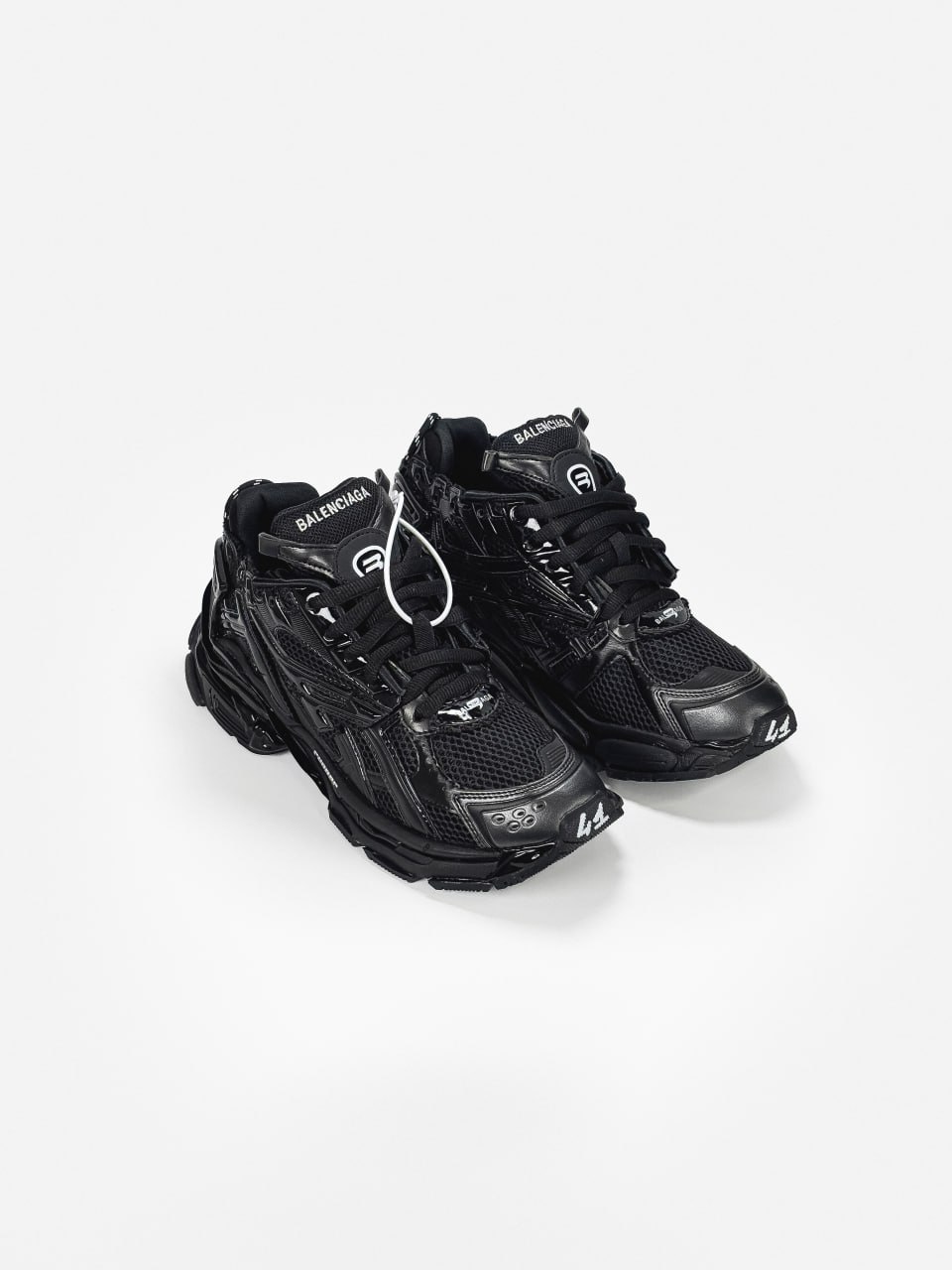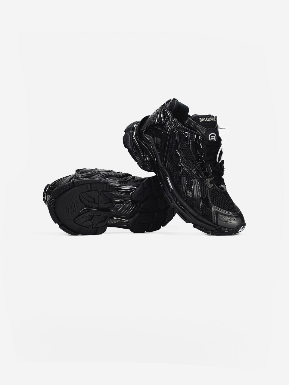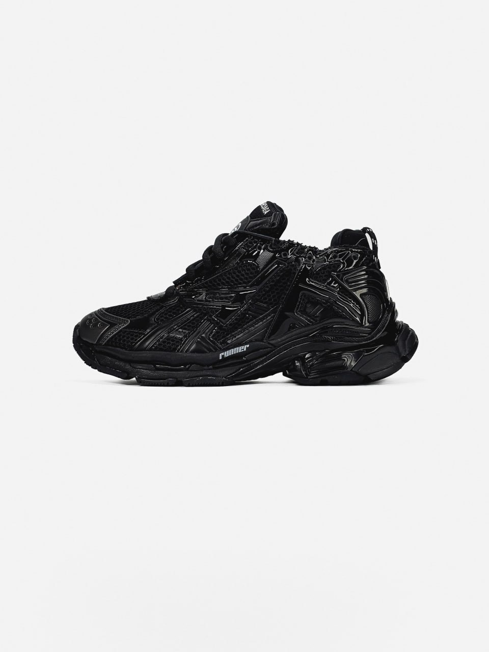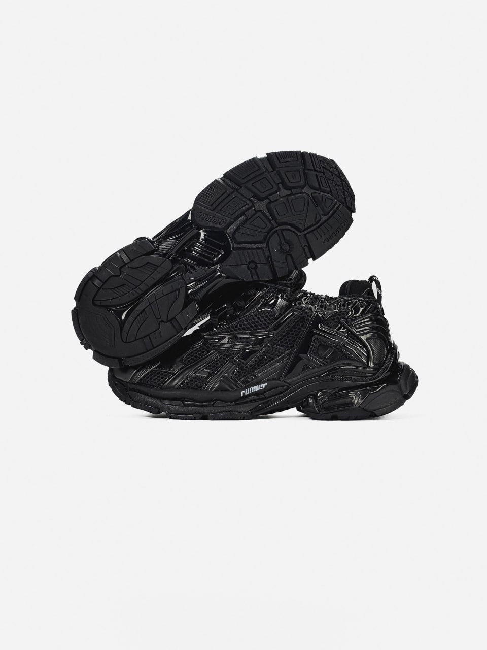 Balenciaga Runner Black — це елегантні чорні кросівки з мінімалістичним дизайном, що поєднують сучасну естетику та високий рівень комфорту.